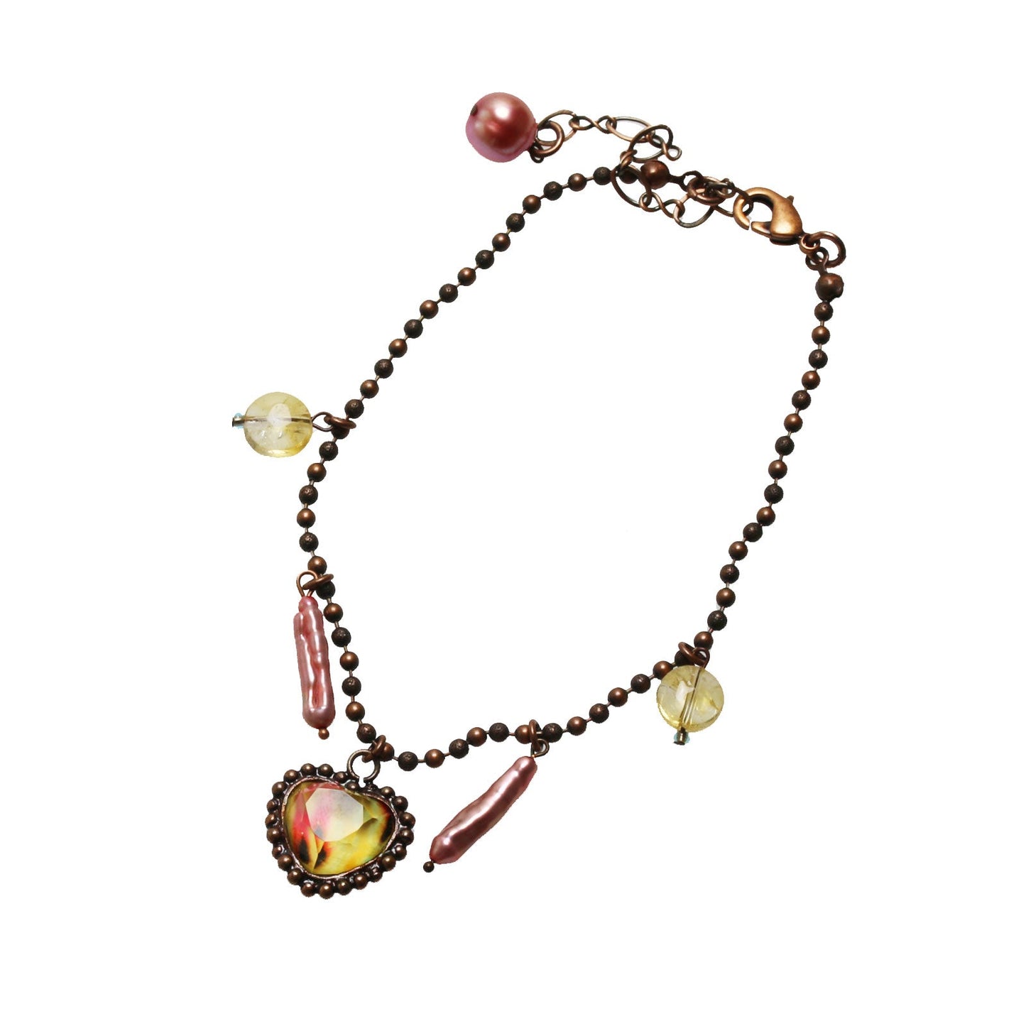 It is an anklet which combines heart-shaped resin parts of "Dororon Series (Pink) with freshwater pearl and citrine. A beautiful shade is a unique design that attracts eyes.