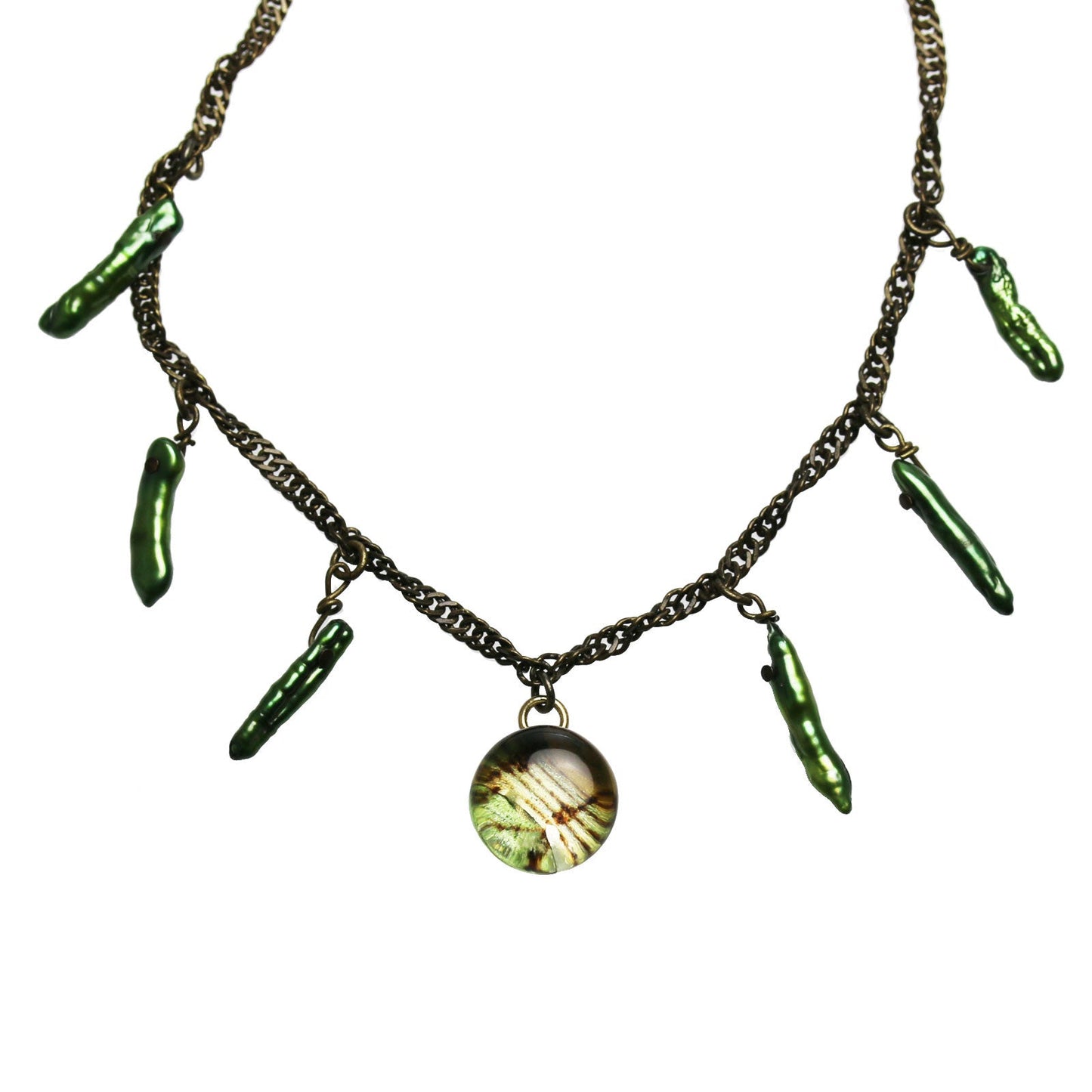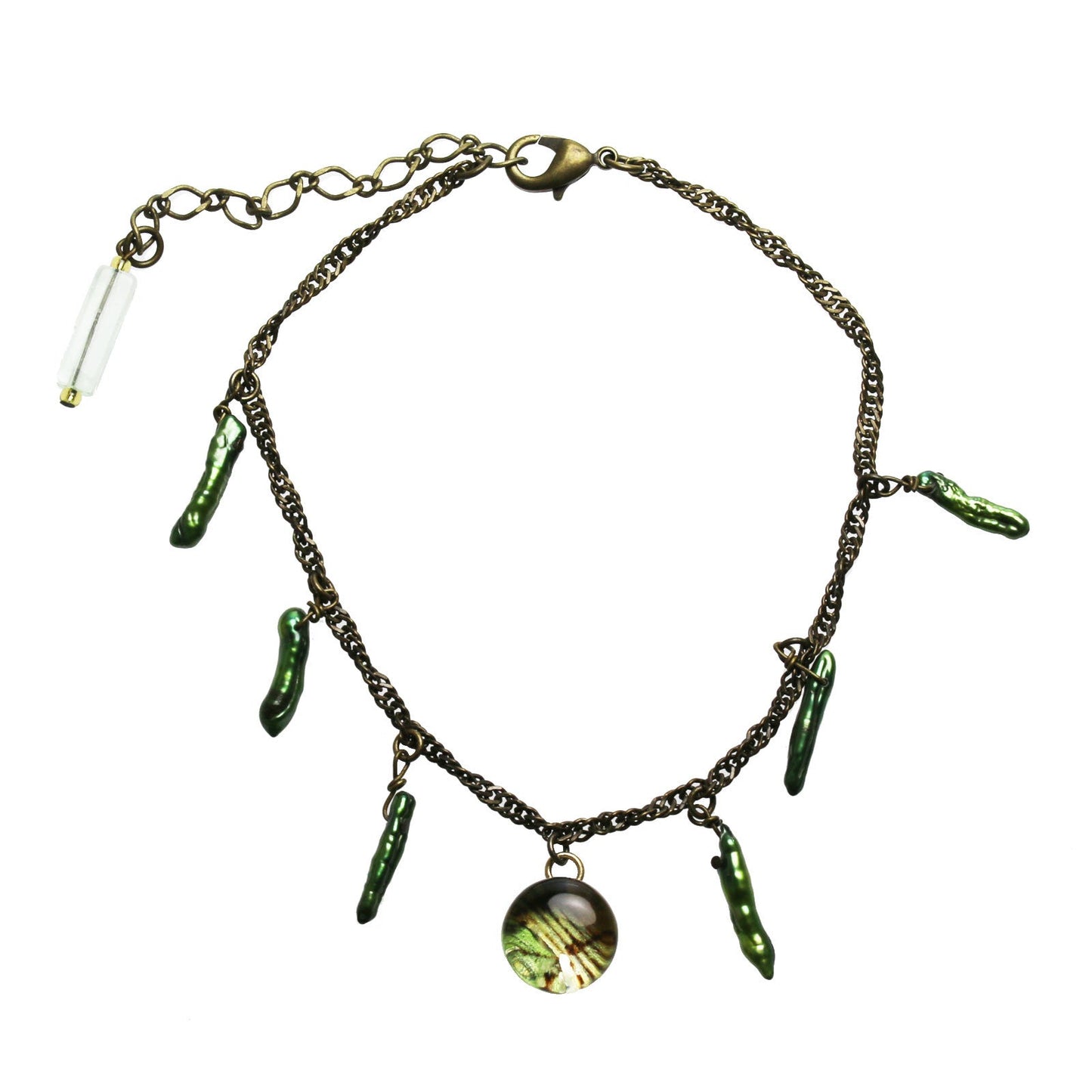 It is an anklet using plastic parts of "Musical Note Series" (Green). Flow light and freshwater pearl were combined according to the color of resin. It is recommended for accent of unique feet. This product is made intentionally so that silver or gold powder is put in the resin as a design and the musical note is not seen well. Because I cut the part of the note randomly, it may become a slightly different hue from the photograph.