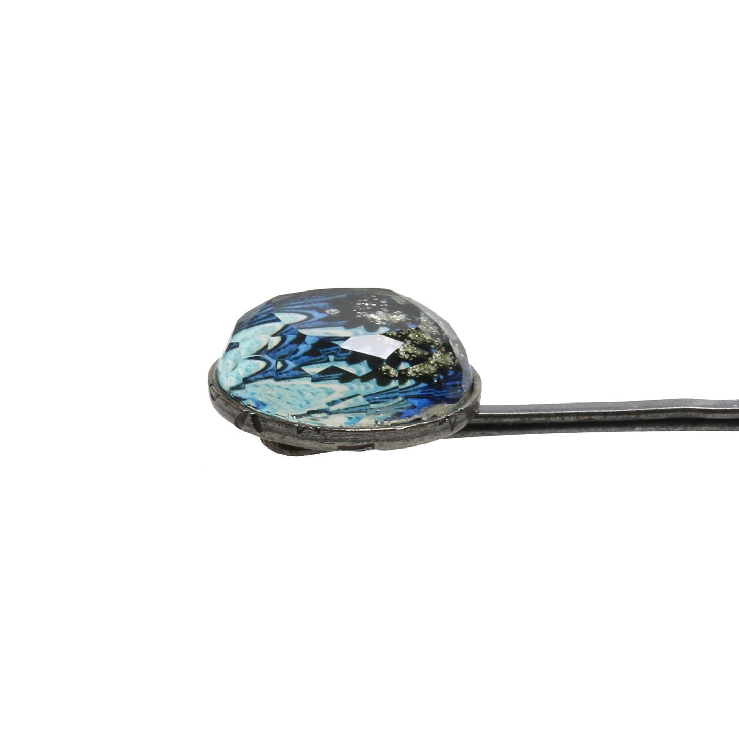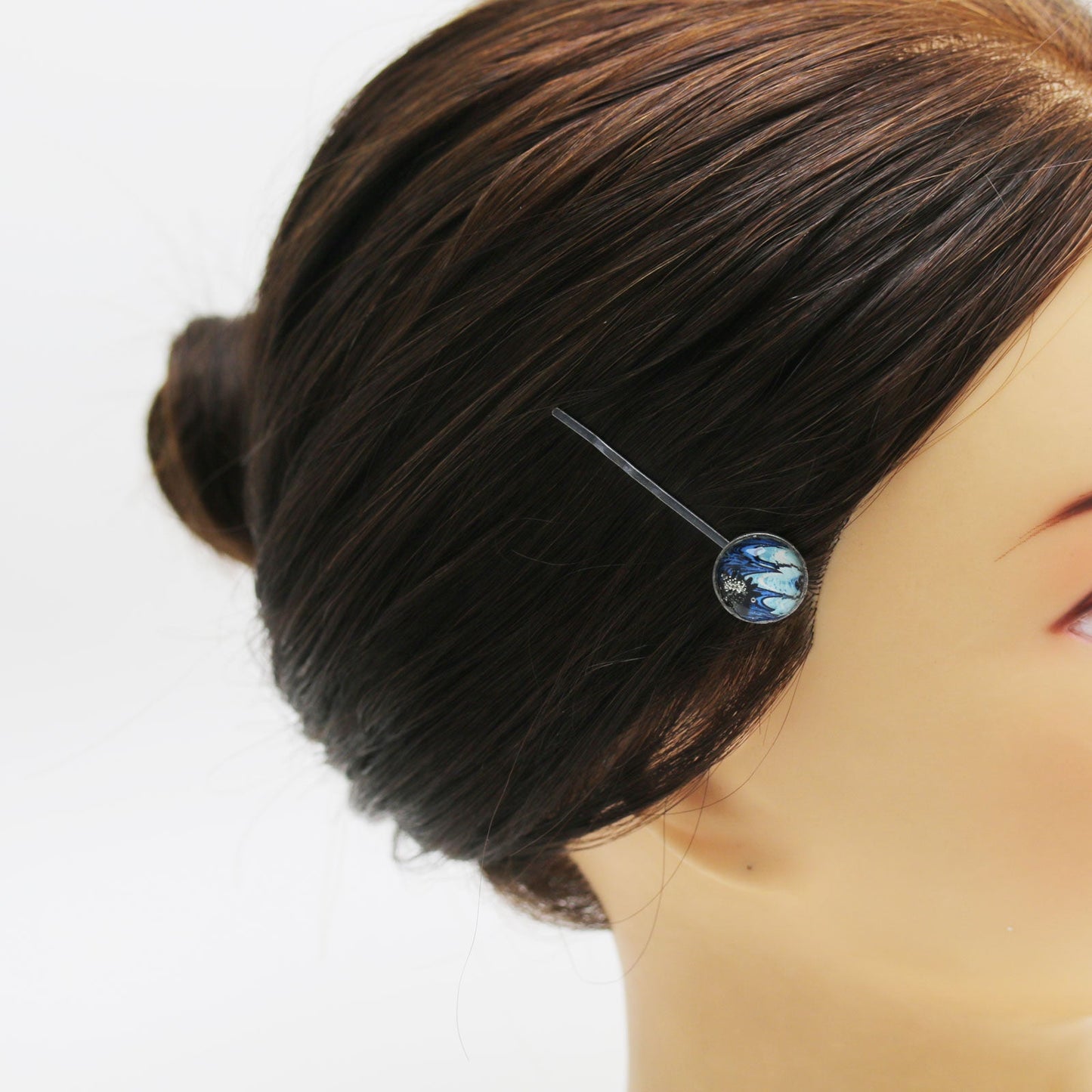 It is a simple hairpin using the resin parts of the "Marble Series "(Blue) round shape. The surface is cut flat and shines. Please enjoy the beauty of the marble pattern. It can be an accent of your hairstyle.
