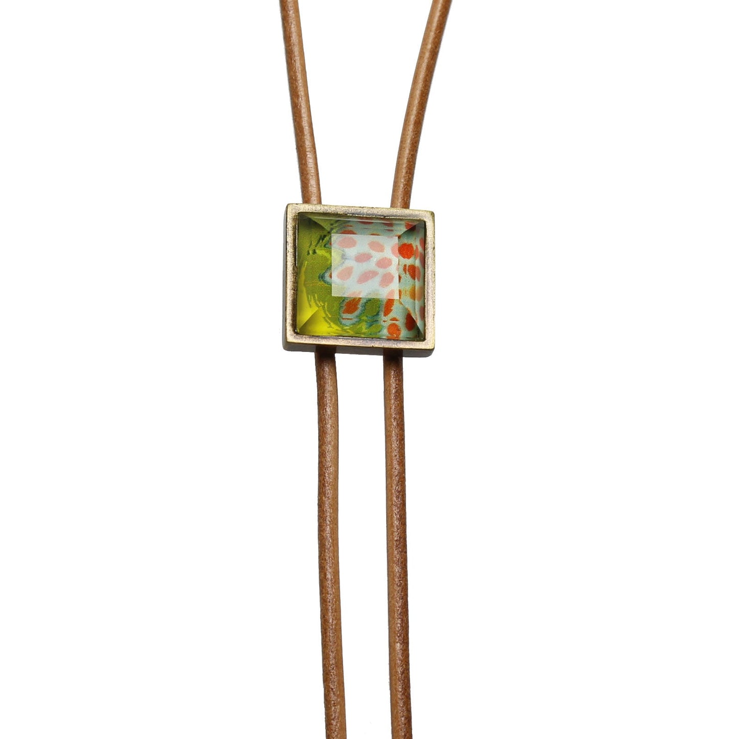Leather Strap Bolo Tie Square Men's Necklace Multicolor