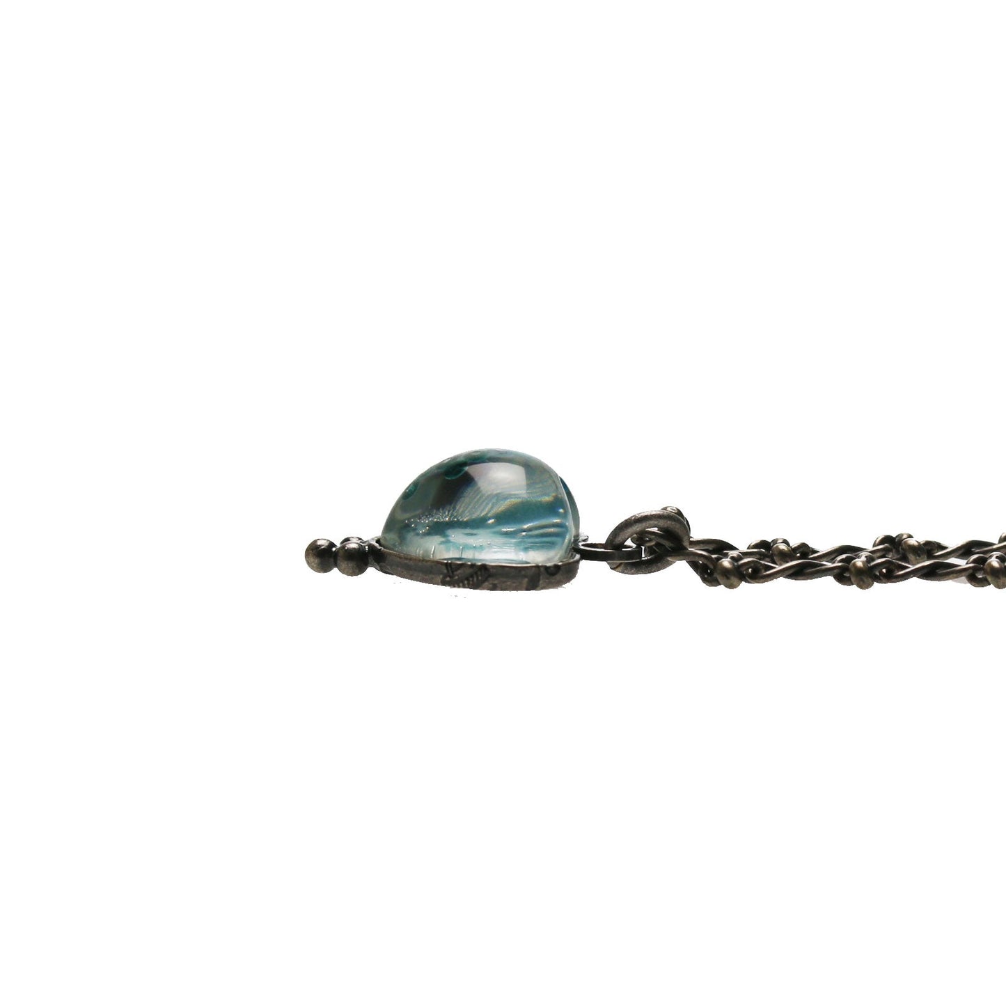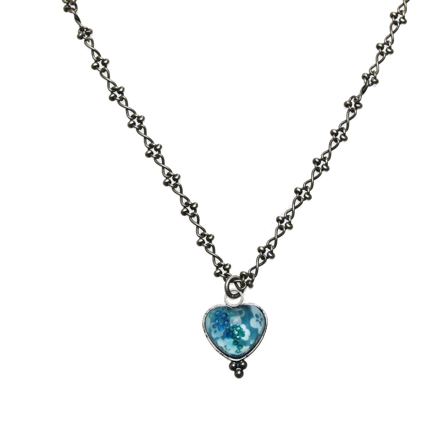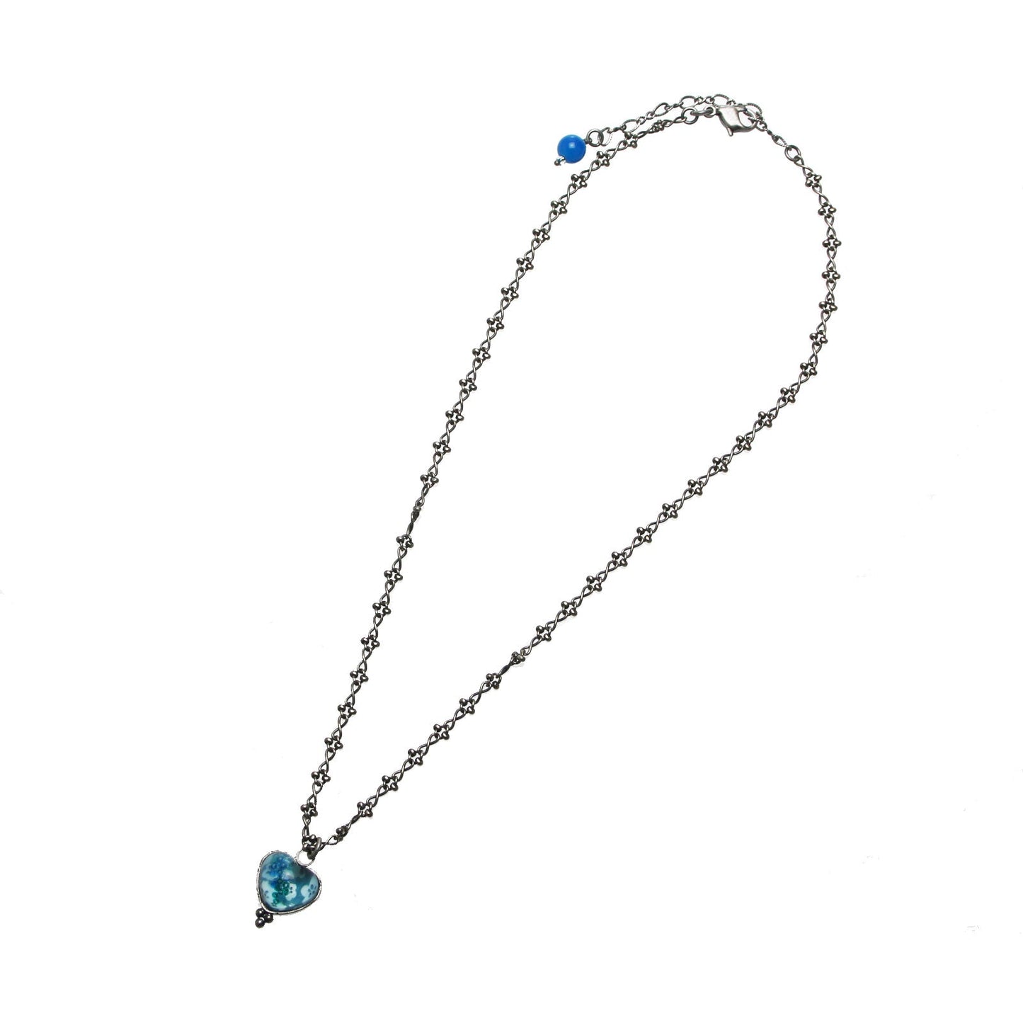 It is a necklace using resin parts of "Plum Cake Series" (Blue). We hung heart-shaped resin hanging in a chain like a small floral finish and finished it simple. Recommended for cute accent of the chest. The stone on the adjuster is agate (dyed).