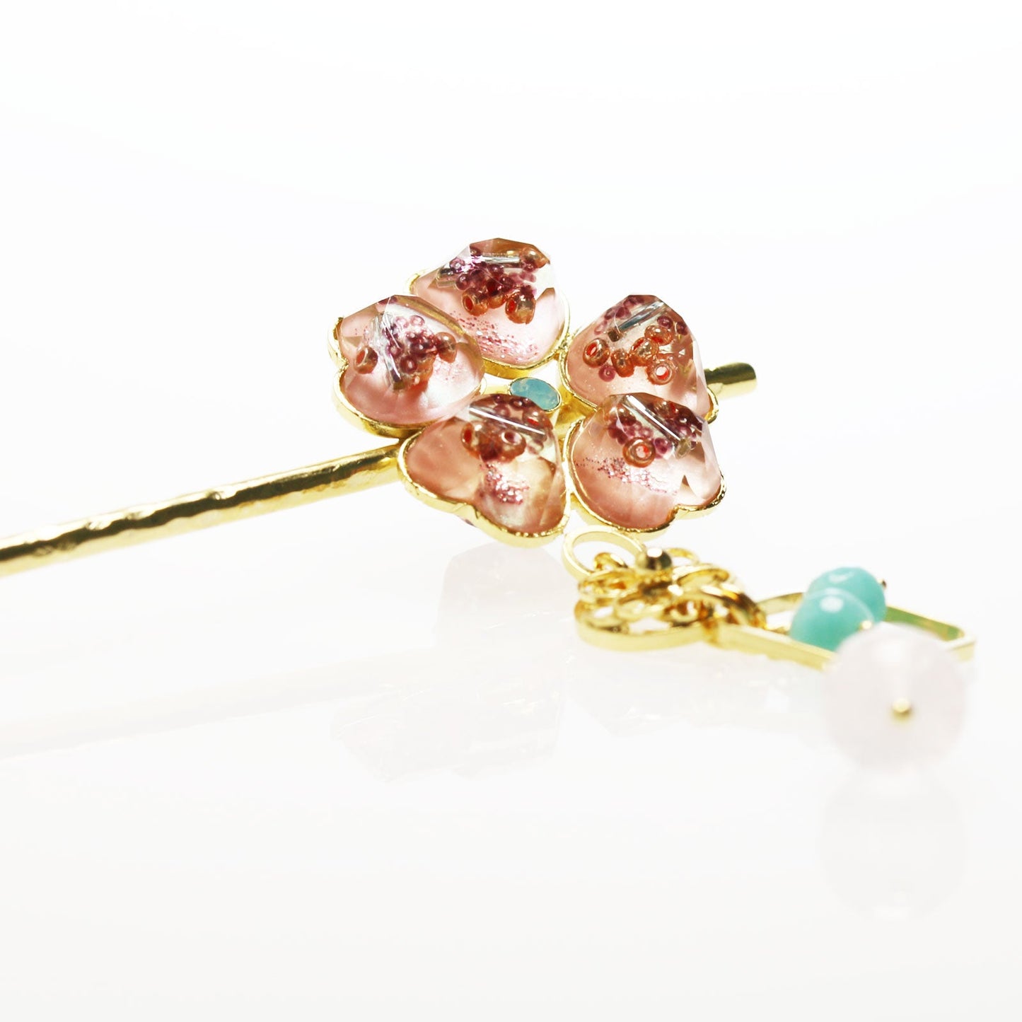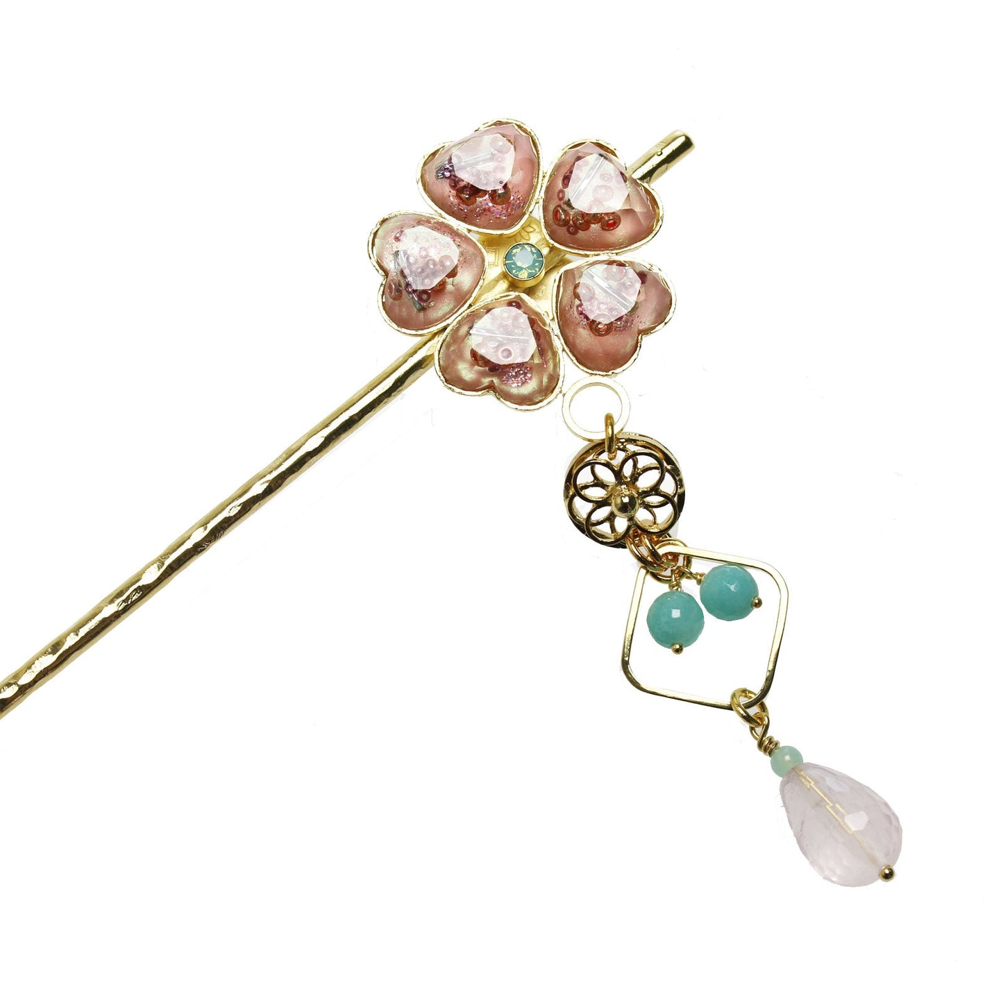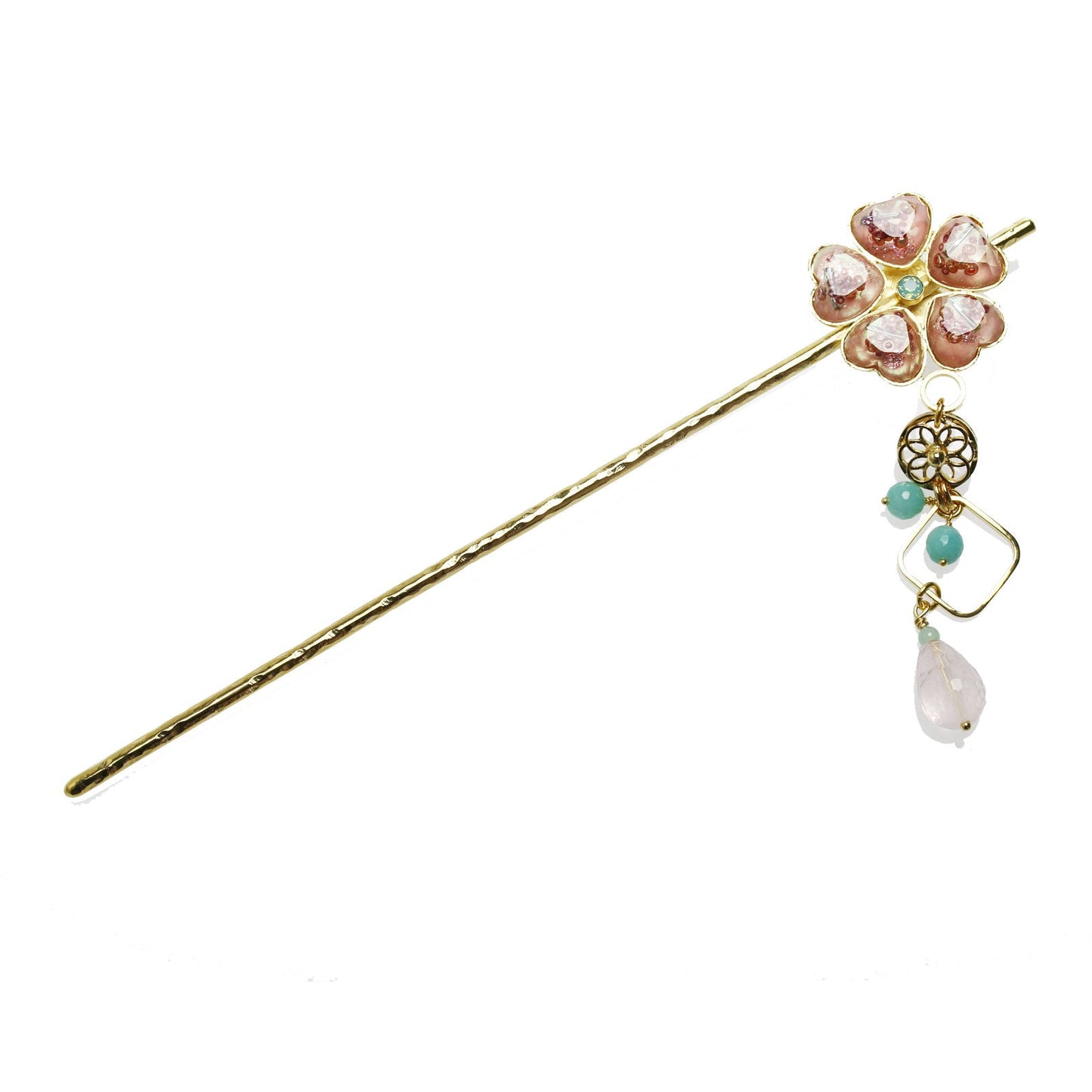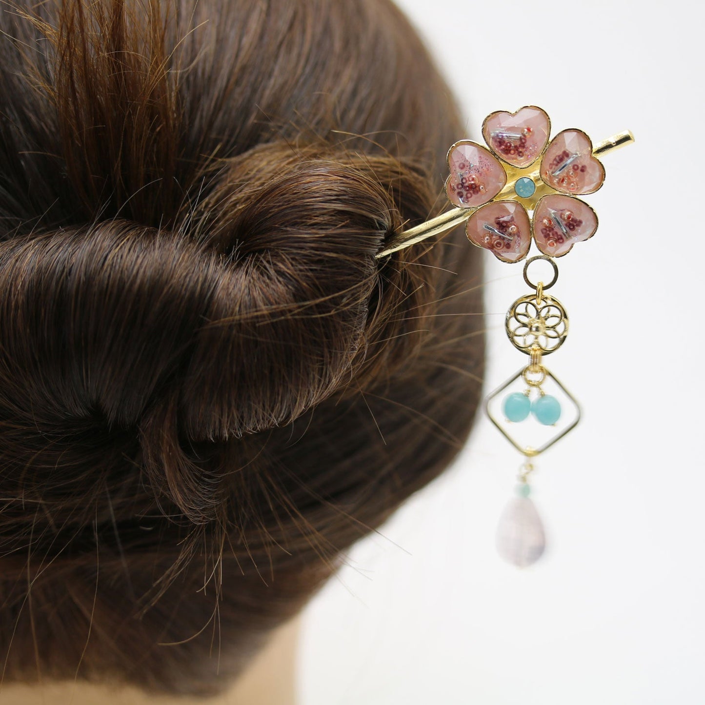 It is the hairpin, which was using the resin parts of "Jewel Box Series" (Pink). We hung rose quartz and Amazonite according to the color of the resin. Recommended for gorgeous accent of hairstyle. It is not a popular series for gifts.