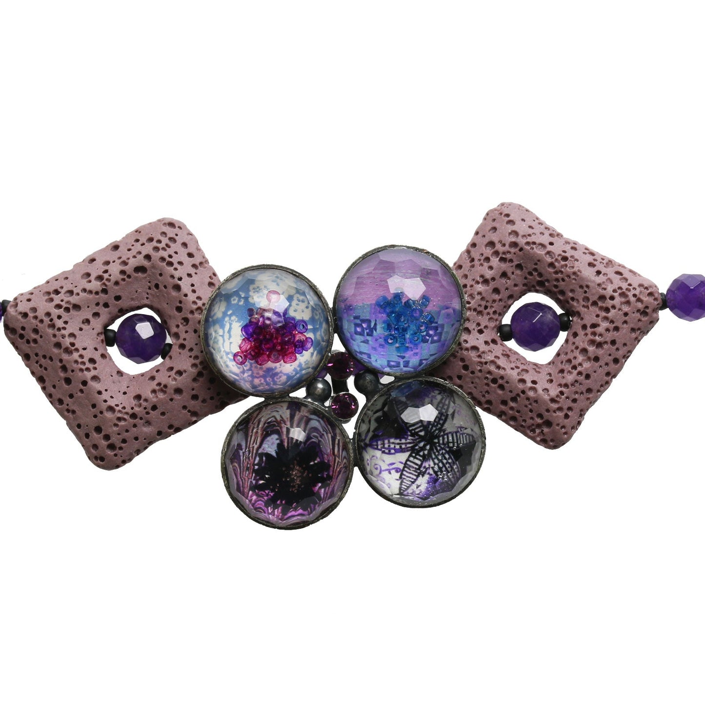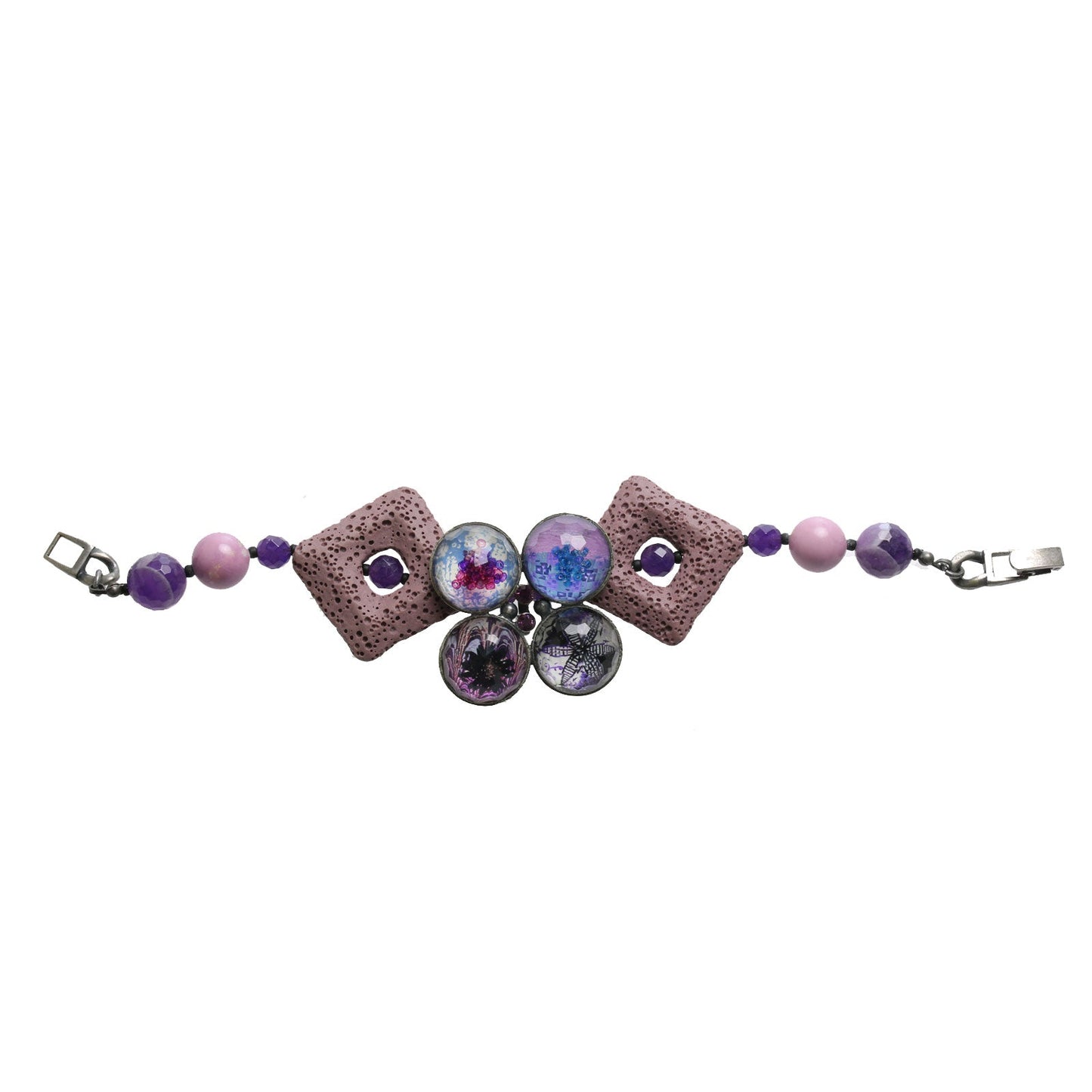 It is a bracelet using resin parts of "Marble Series"(Purple) "Plum Cake Series" (Purple) "Lily Series" (Purple) "Carpet Series" (Purple). It is a gorgeous design that combines amethyst, phosphosiderite, and mule to match the color of the resin. When you put it on, your hand looks thin and beautiful.