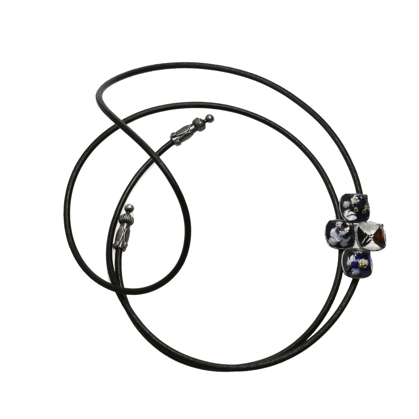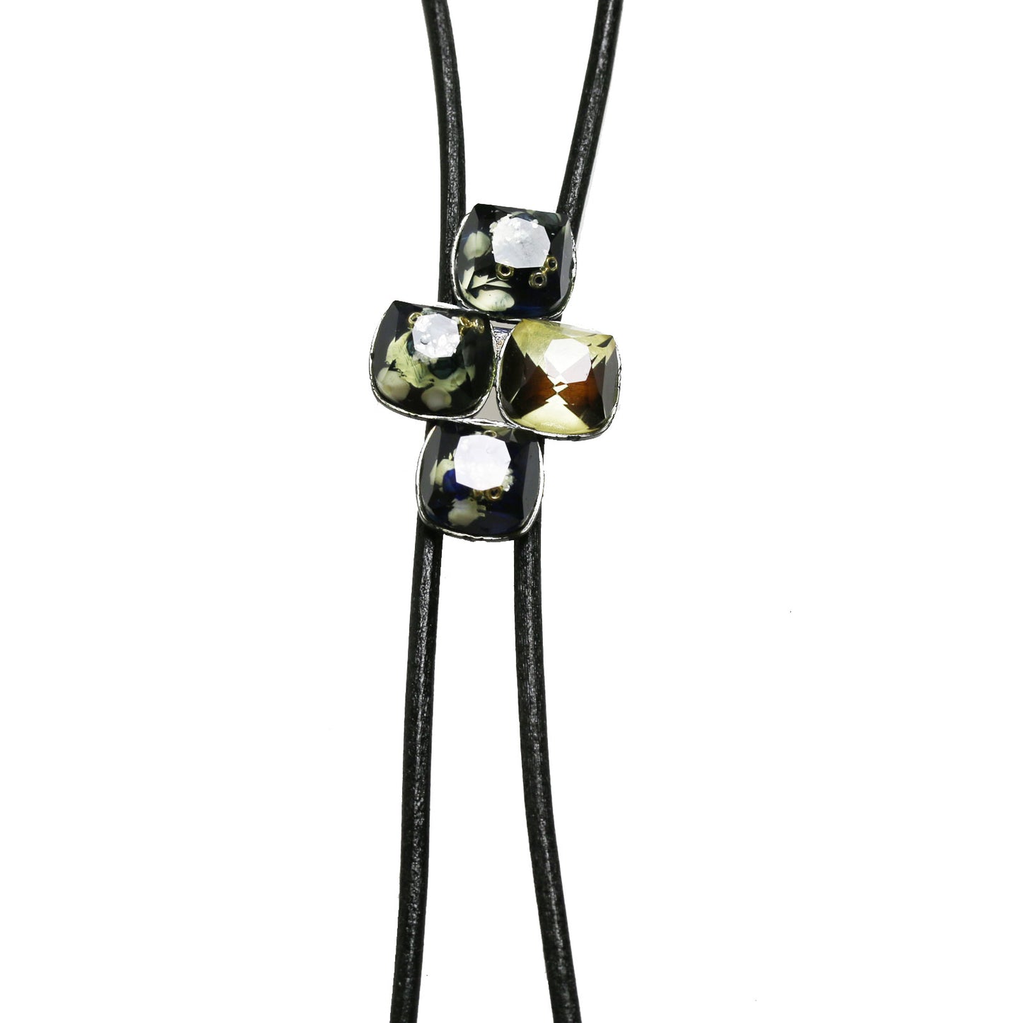 It is a leather straps bolo tie using square resin parts of "Black & White Series" and "New Candy Series" (Navy Blue). It attracts the eye in chic colors and unique shape. For a unique accent instead of a tie.