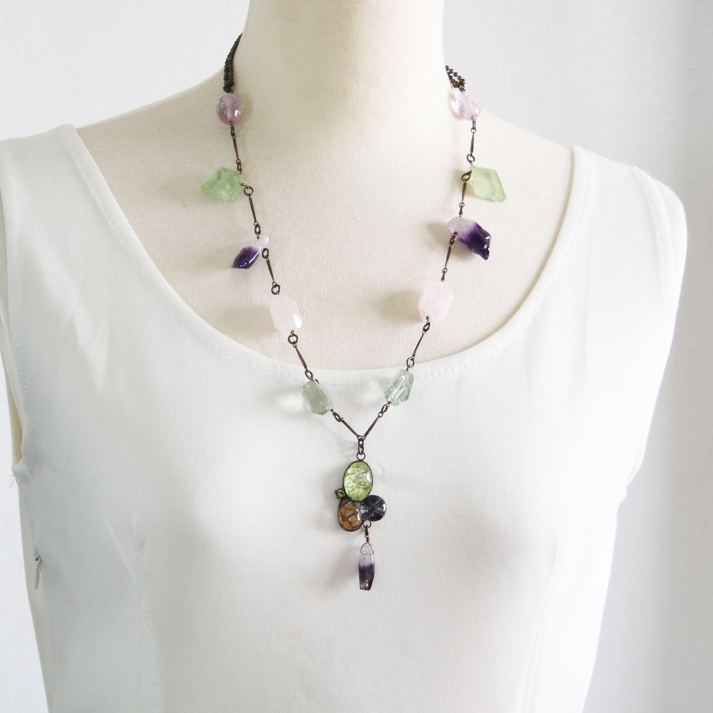 Necklace Amethyst Rose Quartz Purple