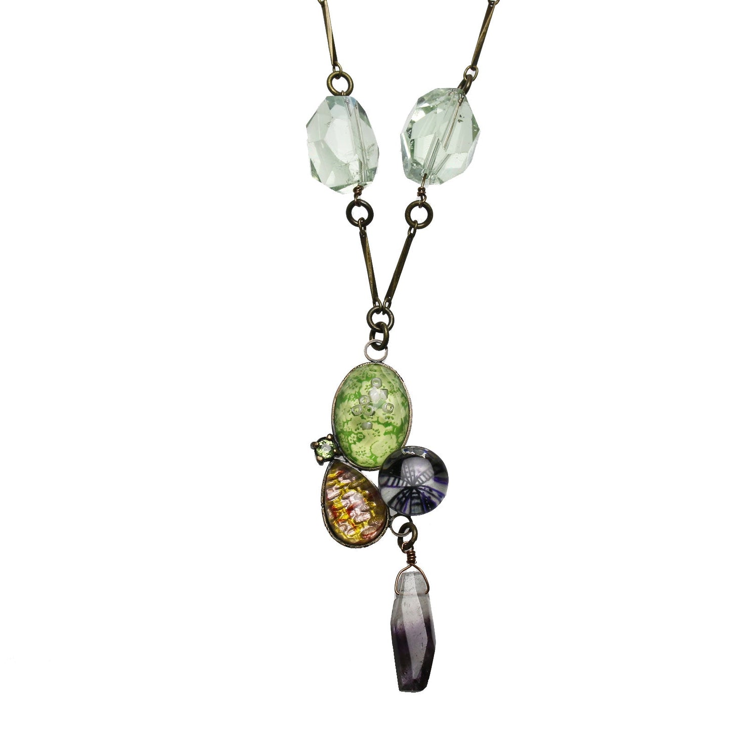 - Amethyst, Prehnite, Rose quartz, Peridot