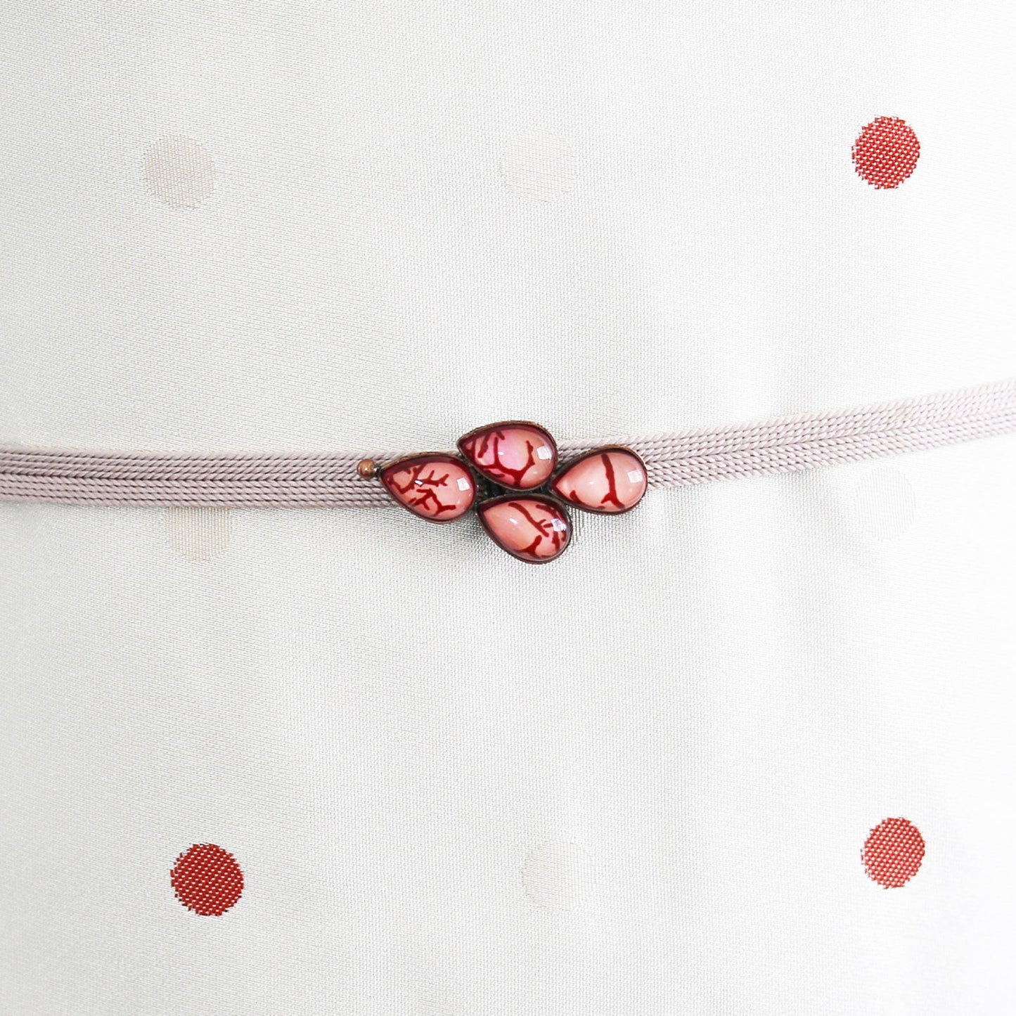 This obi tie using the resin parts of the "Oxblood Coral Series". Draw the eye with a unique design that combines the drop type of resin parts. It is recommended to the unique accent of the simple band.