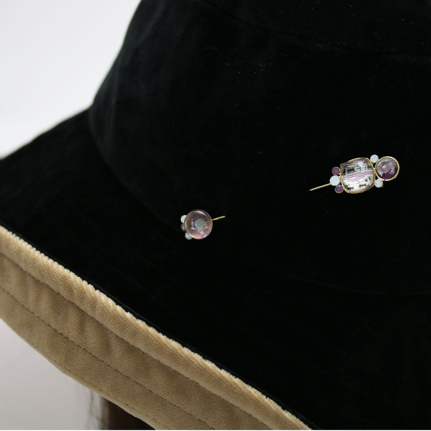 It is an ornamental hatpin combining "Rainbow Series" (Purple) and "Tiger Beatle Series" resin parts. We also decorated the fastener part. The distinctive shape and chic hues draw an eye. To the accent of the neck of a hat or jacket please. It is also recommended for fastening bolero and cardigan.