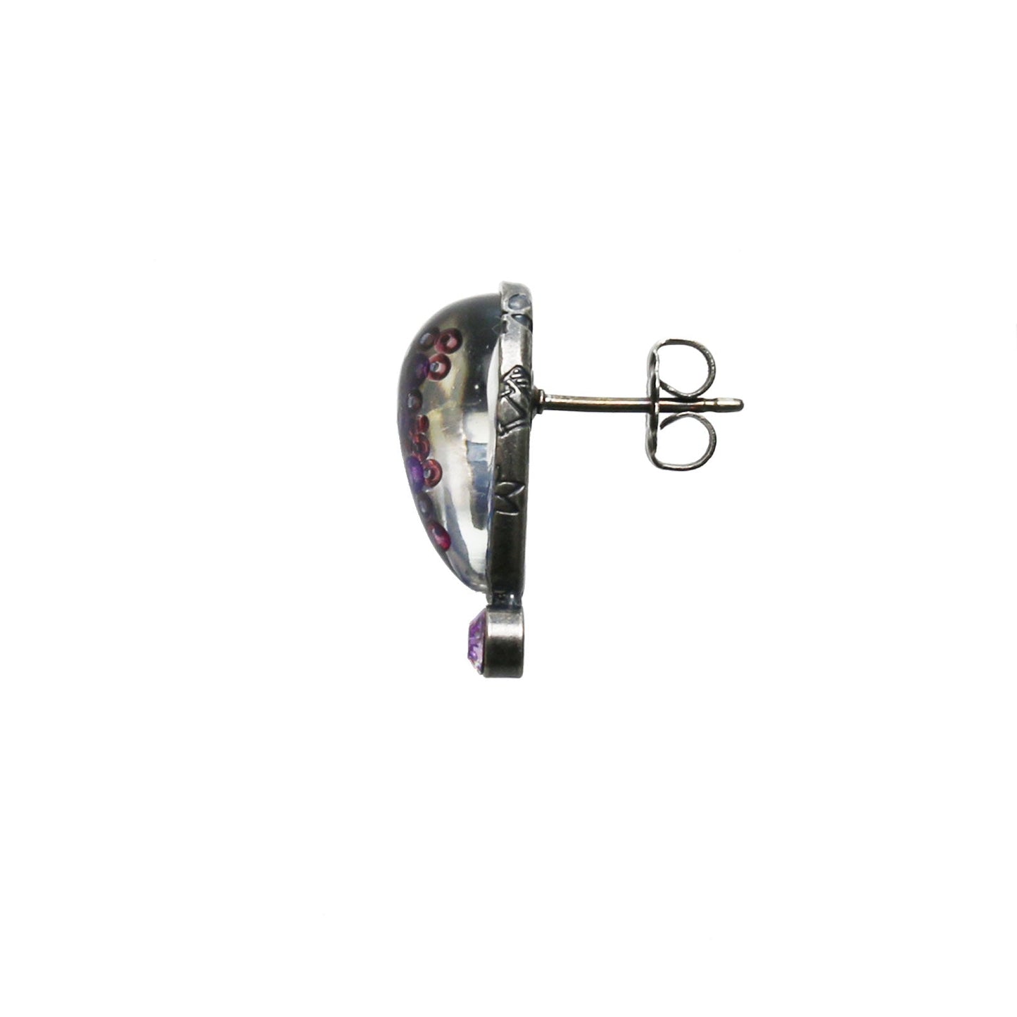 The pair of earrings using the "Plum Cake Series" (Purple) of resin parts. In accordance with the hue of the resin, I attached a wisteria rhinestone. Although it is small, it shines gleamingly. Recommended for casual accent of the ear.