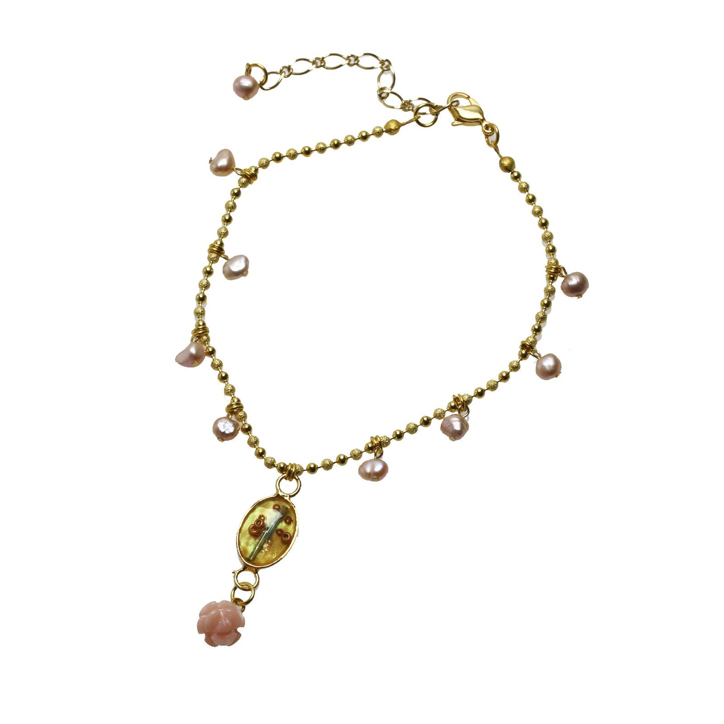 Anklet Freshwater Pearl Pink Common Opal Gold