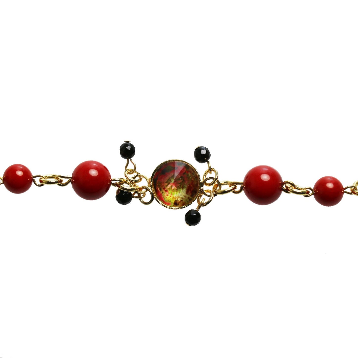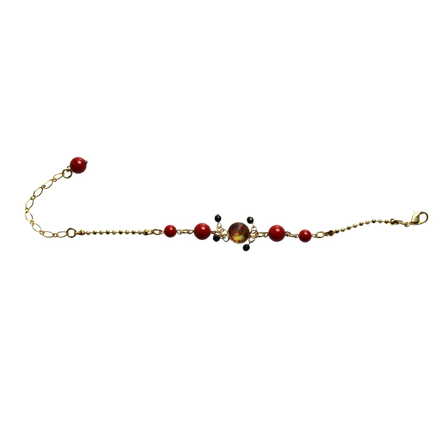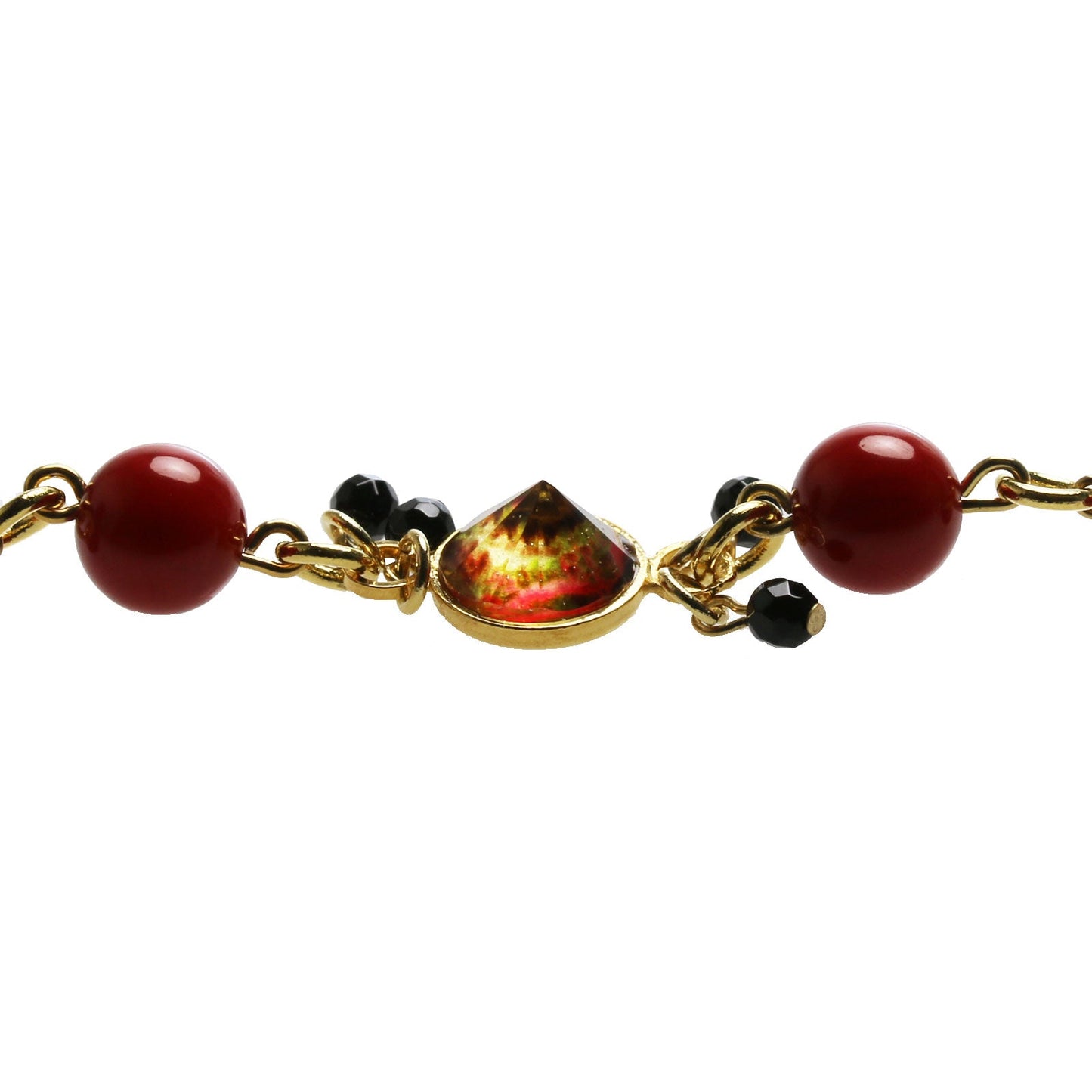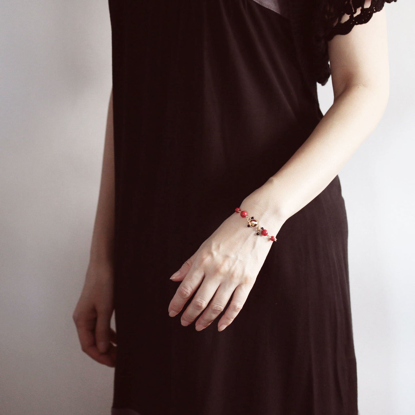 It is a bracelet using resin parts of "Amazon Series" (Red). Attracts eyes with chic hues. Coral (dyed) and onyx were combined according to the color of the resin. Recommended for casual wrist accent.