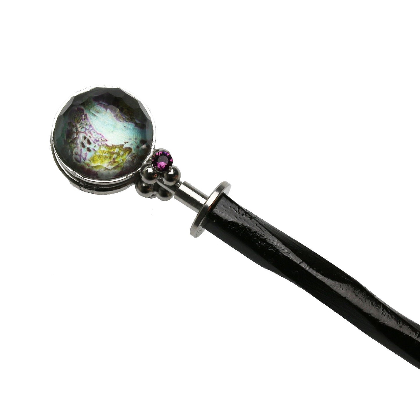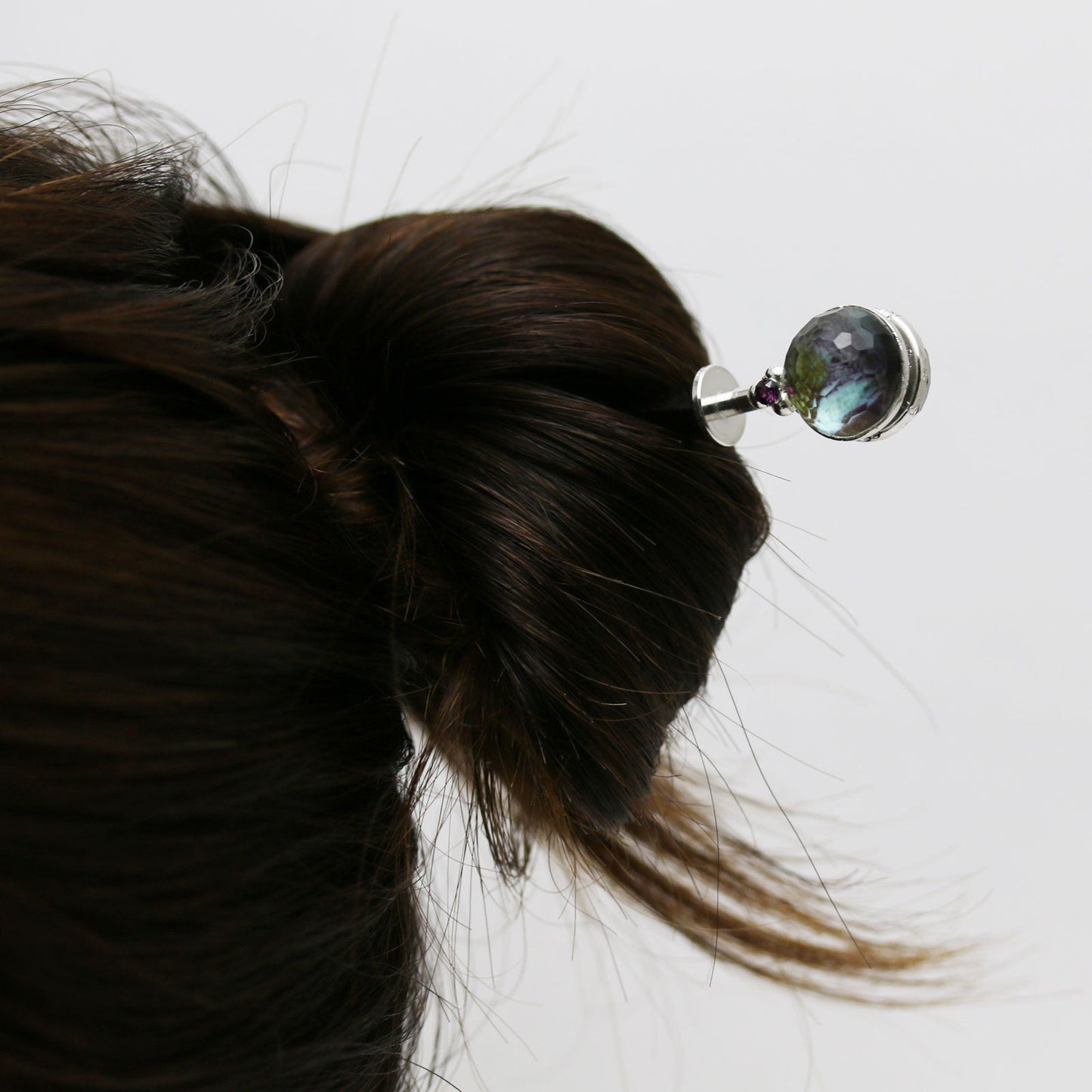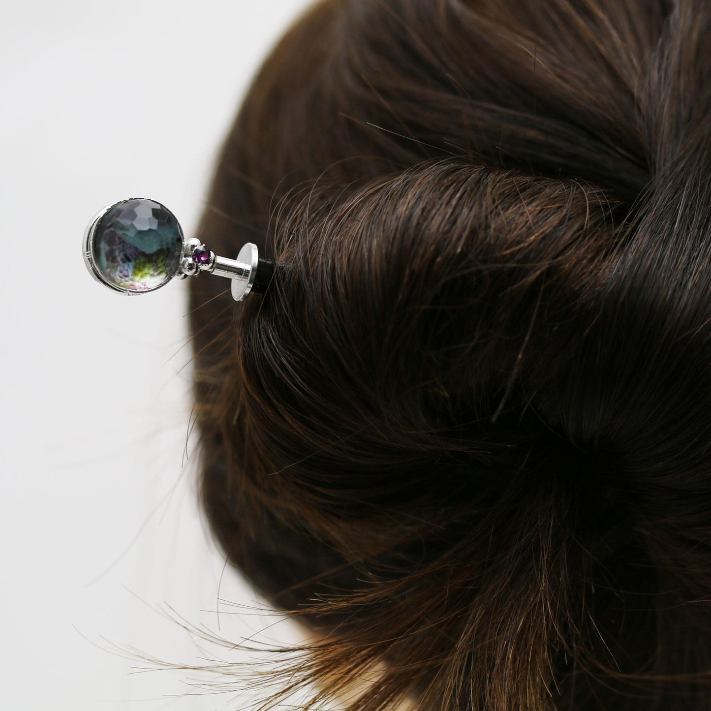 It is a hairpin that uses a round resin parts of the "Amazon Series" (Blue). The chic shades of blue and purple shine on your hair. It is recommended for casual summary hair accents. It fits kimono and clothes as well. Please also for men.