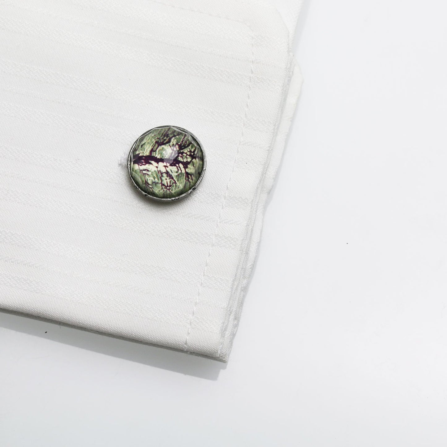 It is a cufflink button using round resin parts of "Forest Series" (Purple). Chic hues and patterns like wood attracts eyes. You can enjoy the unique fashion of cuffs.