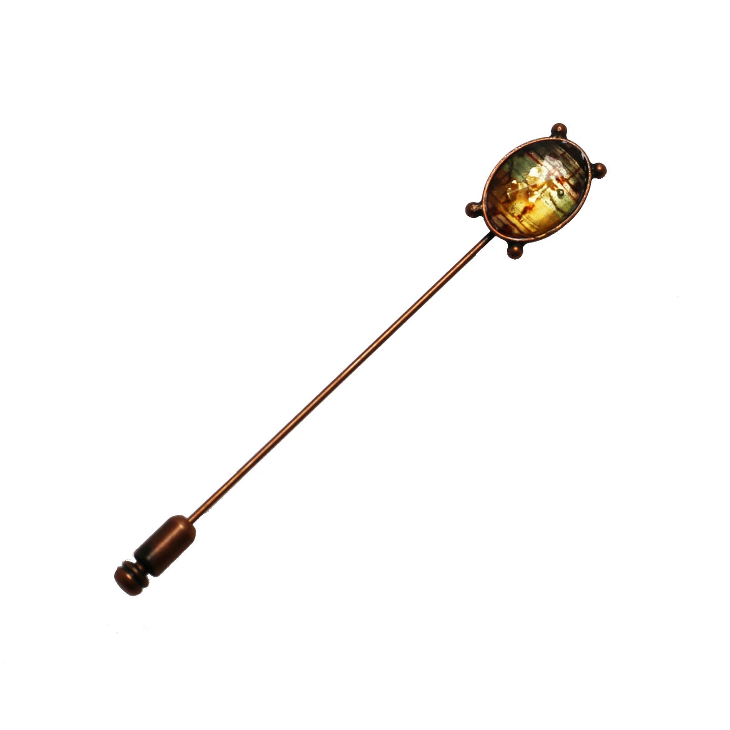 It is a hatpin using the resin part from the "Musicial Note Series" (Pink) shaped oval. The surface cut reflects light, and the musical score inside shines through elegantly. It has an antique style, which is soothing.