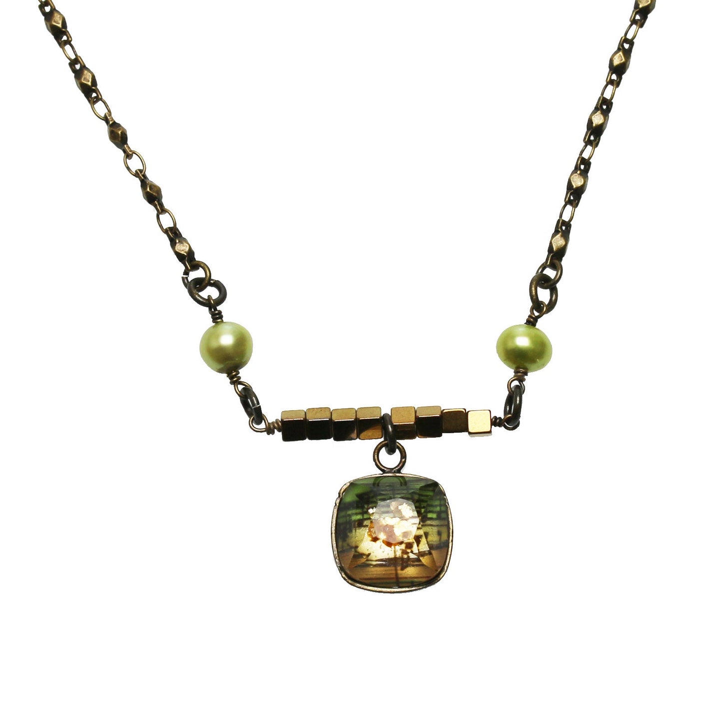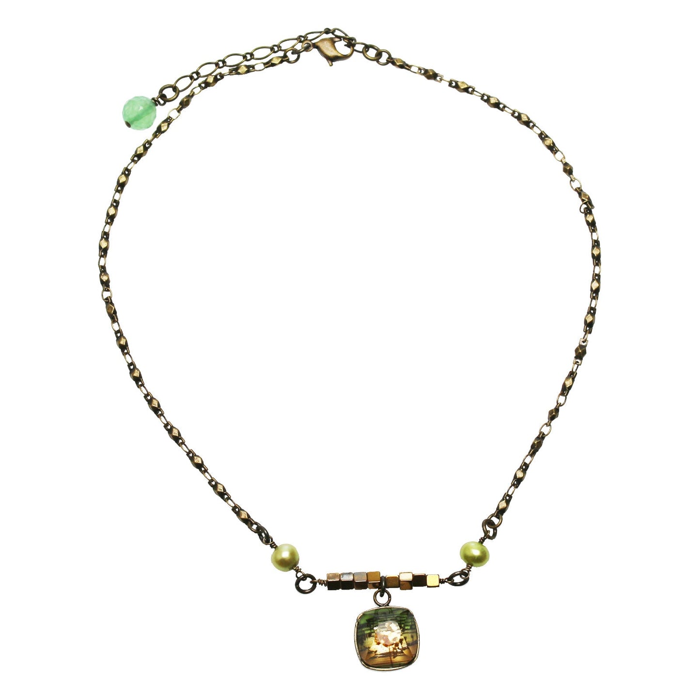 It is a necklace using resin parts of "Musical Note Series" (Green). We combined hematite and freshwater pearls according to the color of the resin. It is easy to coordinate with chic hues. Recommended for casual and unique accent. We hung the aventurine to the adjuster. This product is made intentionally so that silver or gold powder is put in the resin as a design and the musical note is not seen well. Because I cut the part of the note randomly, it may become a slightly different hue from the photograph.