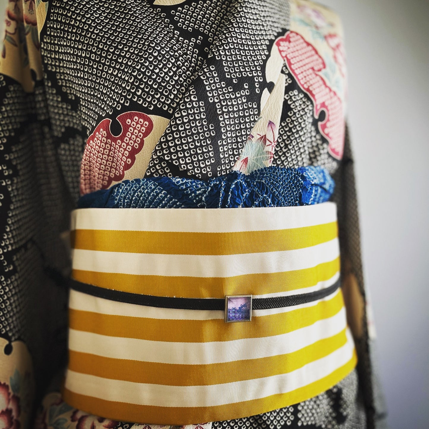 It is an obidome using a square resin parts of "Carpet Series" (Purple). It is easy to coordinate with a chic purple and a solid square. To the unique accent of the kimono belt. You can also use it as a choker through a ribbon or string. Please use it for three to four tenth string cord. *Japanese Kimono accessories "Obidome" refers to an accessory passed through 'Obijime'(a string tied around the waist to fix obi).