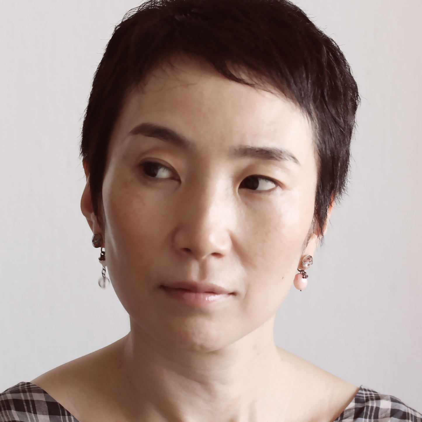 It is a piercing using resin parts of "Jewel Box Series" (Pink). Since hanging ornaments are attached to the catch part, you can also simply wear it by replacing it with a catch that is not attached. Resin parts and metal parts are handmade.