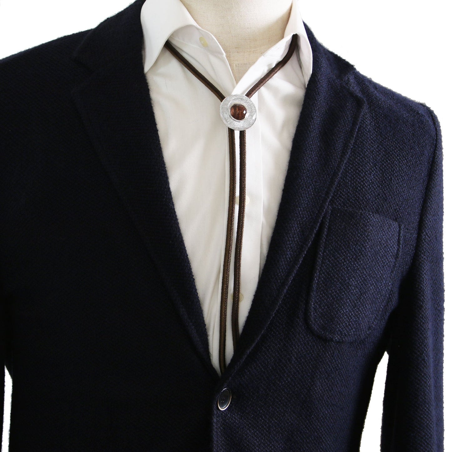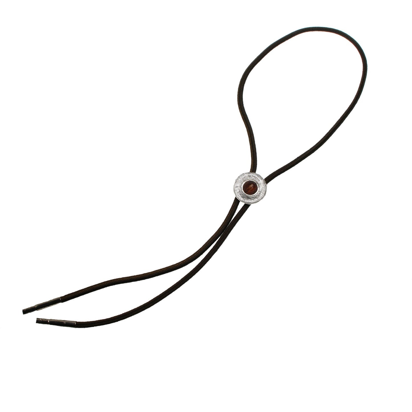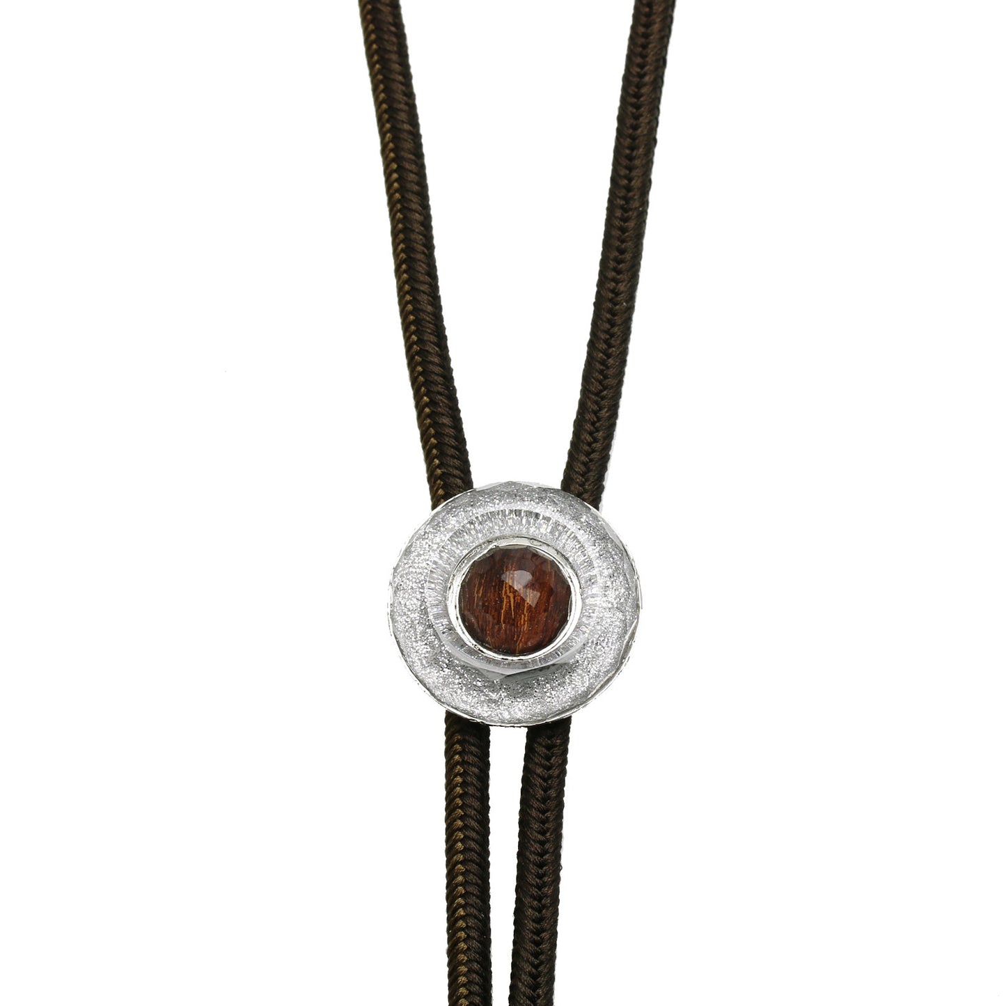Silk Braid Bolo Tie Silver Donut Brown