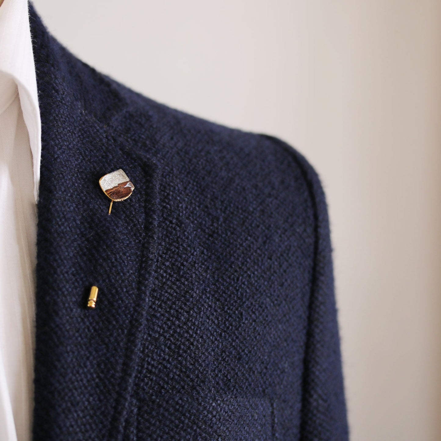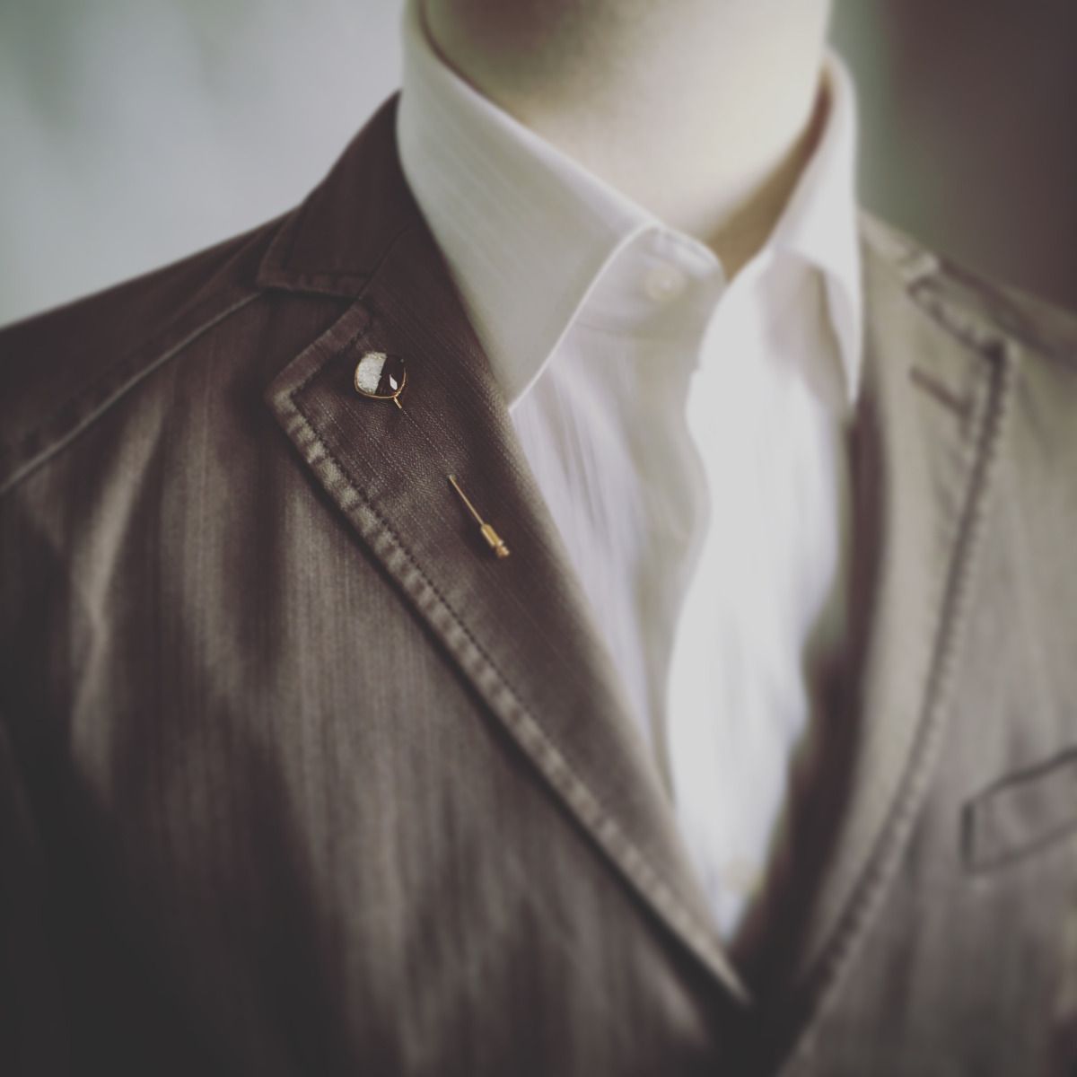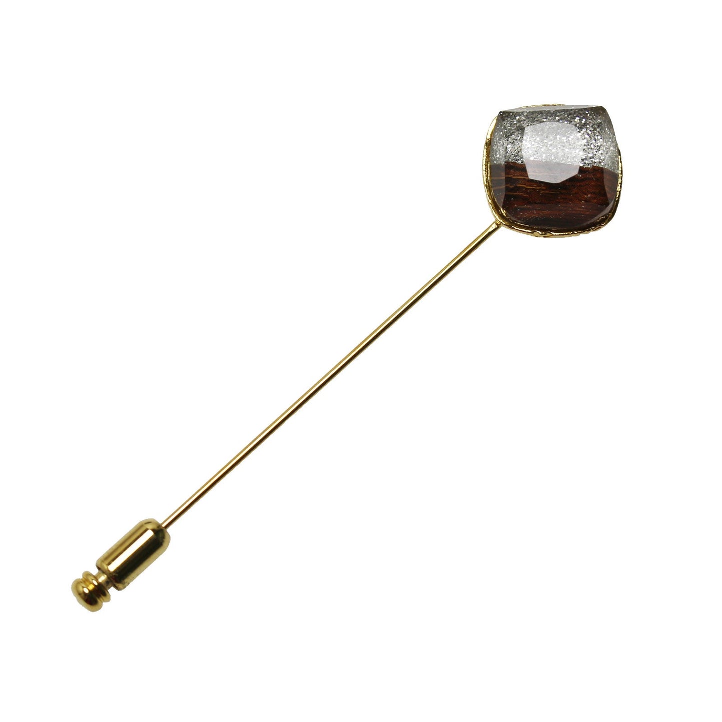 It is a simple hatpin from "Wood and Lame Series" made from resin. The metal is gold. The contrast between the silver lame grain and wood is also chic. We recommend it as accents on your jacket lapel or a hat. You can use it on your scarf or shawl, especially in winter.