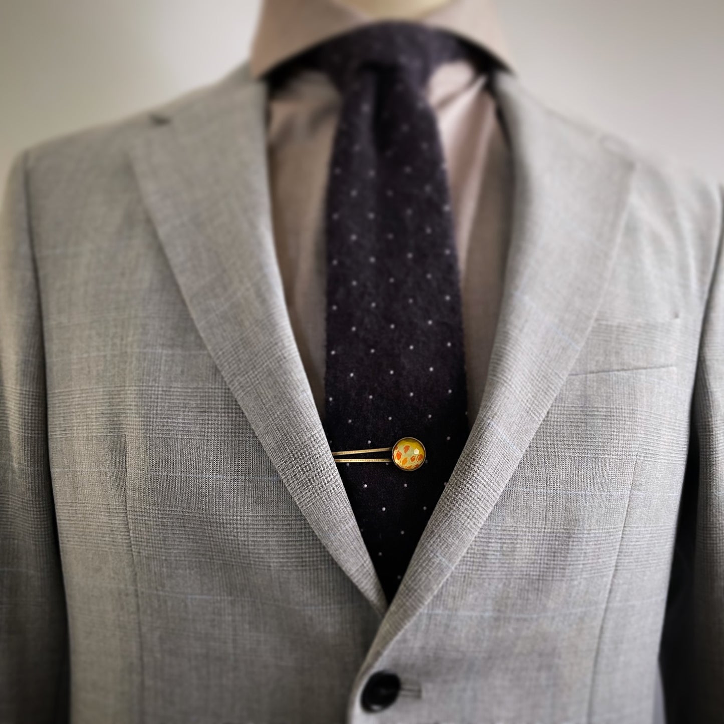 It is a simple tie clip with round resin parts of "Japanese Chrysanthemum Knit Series" (Blue). Unique shading attracts eyes. You can enjoy the unique fashion of a tie. Resin parts and metal parts are handmade.