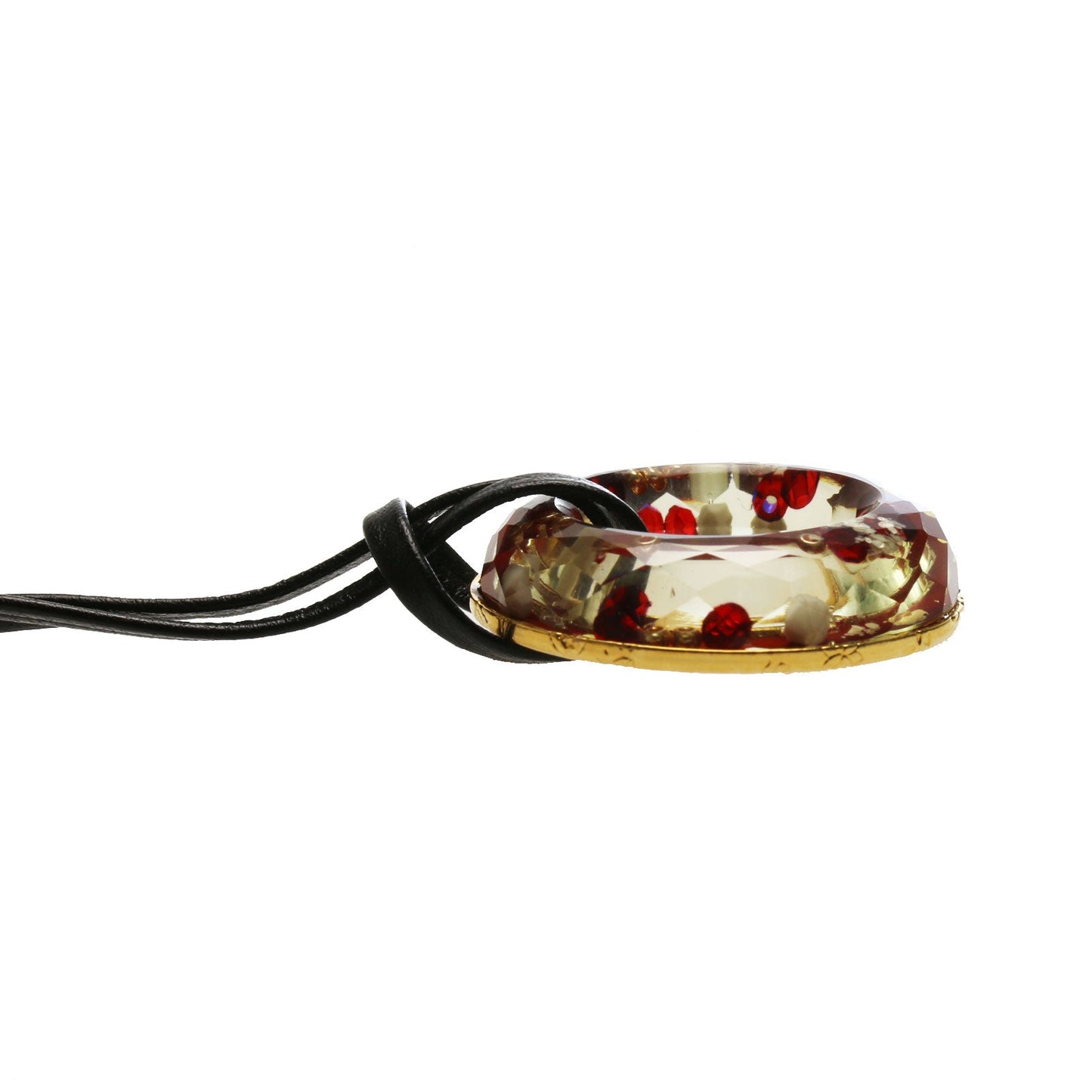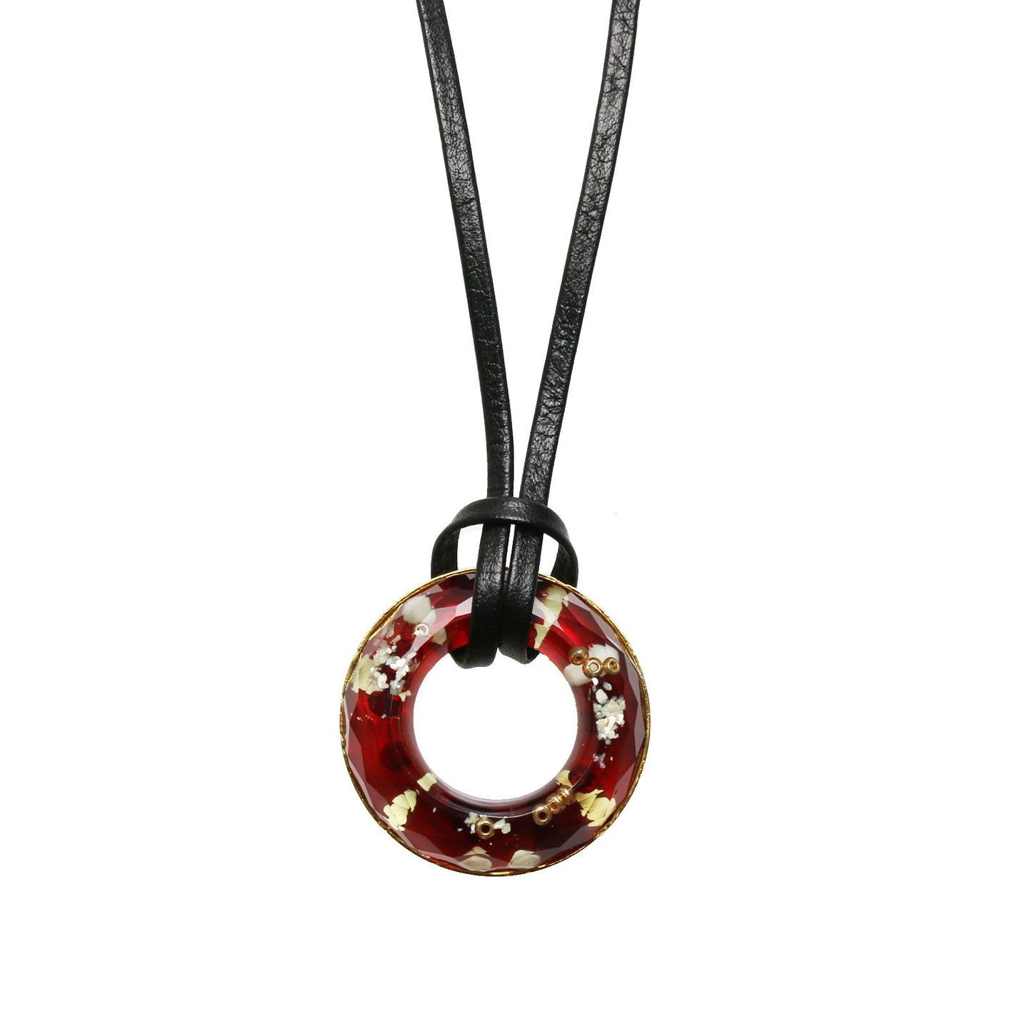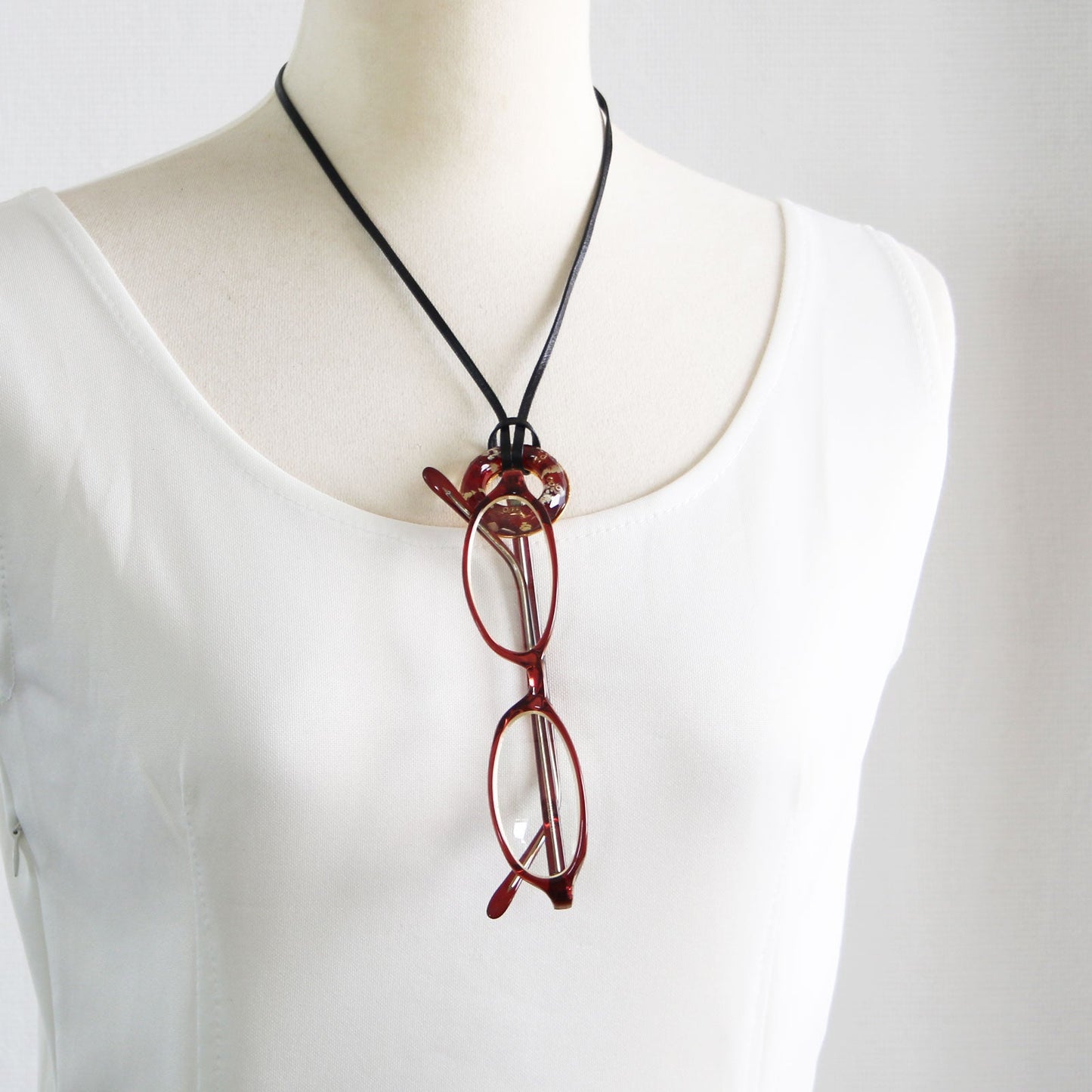 It is an eyeglass holder using resin parts of "New Candy Series" (Red). Please use the glasses hooked on the ring part. You can use it as a necklace without glasses. It is very convenient because you can adjust the length freely by sliding the clasp. It is lighter than it looks and the necklace should be tried if you feel stiff shoulders. Because it is a strap, it is also recommended for those who are allergic to metal. Corresponds to the width of temple (arm part of glasses) 1.5 cm or less.