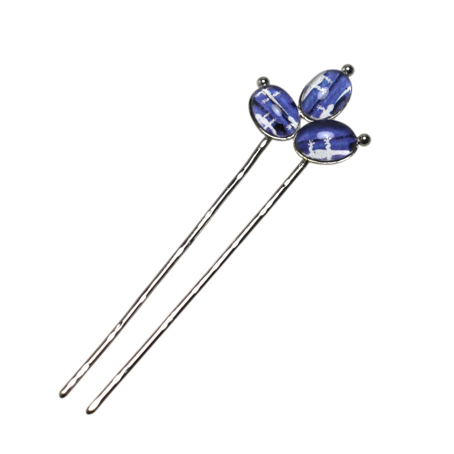 Short Double Prong Hair Pin Blue Gecko