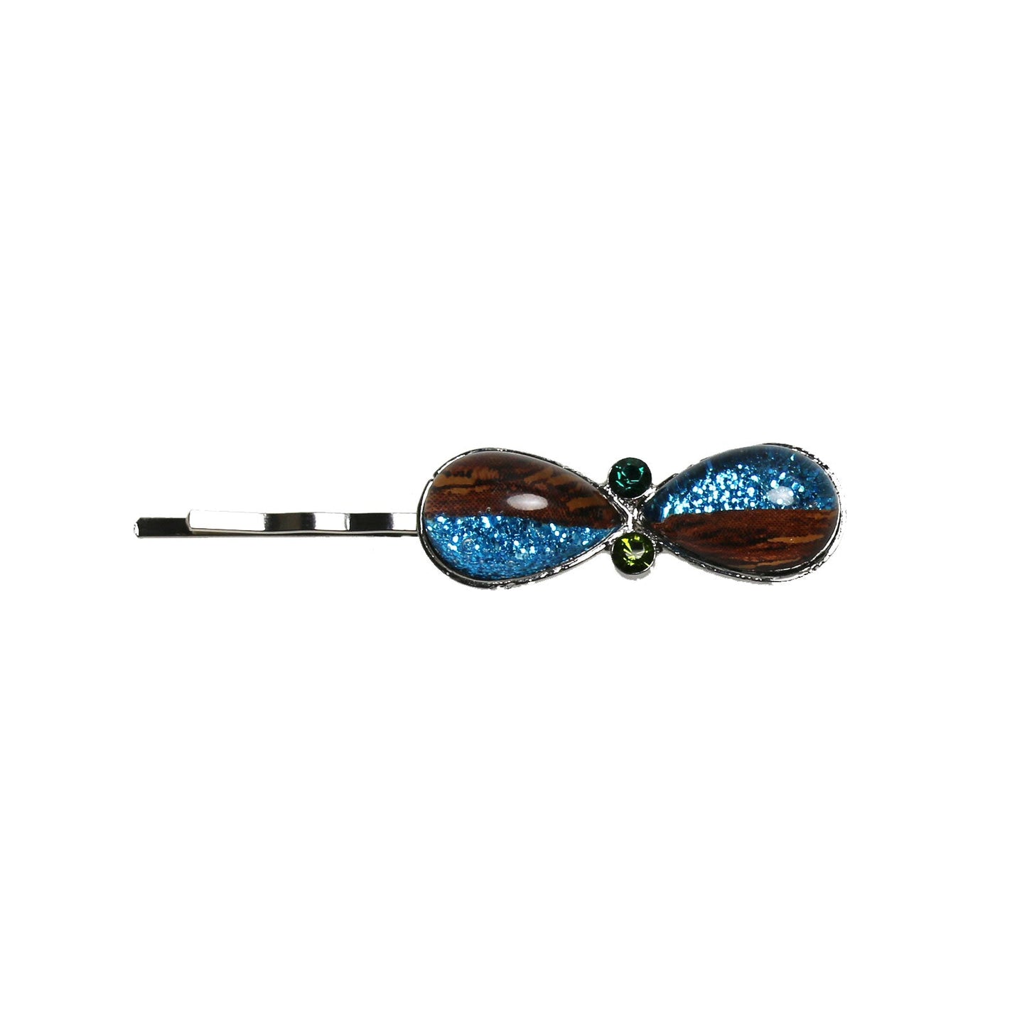 It is a gorgeous hairpin using resin parts of "Wood & Lame Series". It pull the eye in a unique pattern of blue lame and grain. If you wear around the ear, you will not become childish. Recommended for individual style accent of hairstyle.