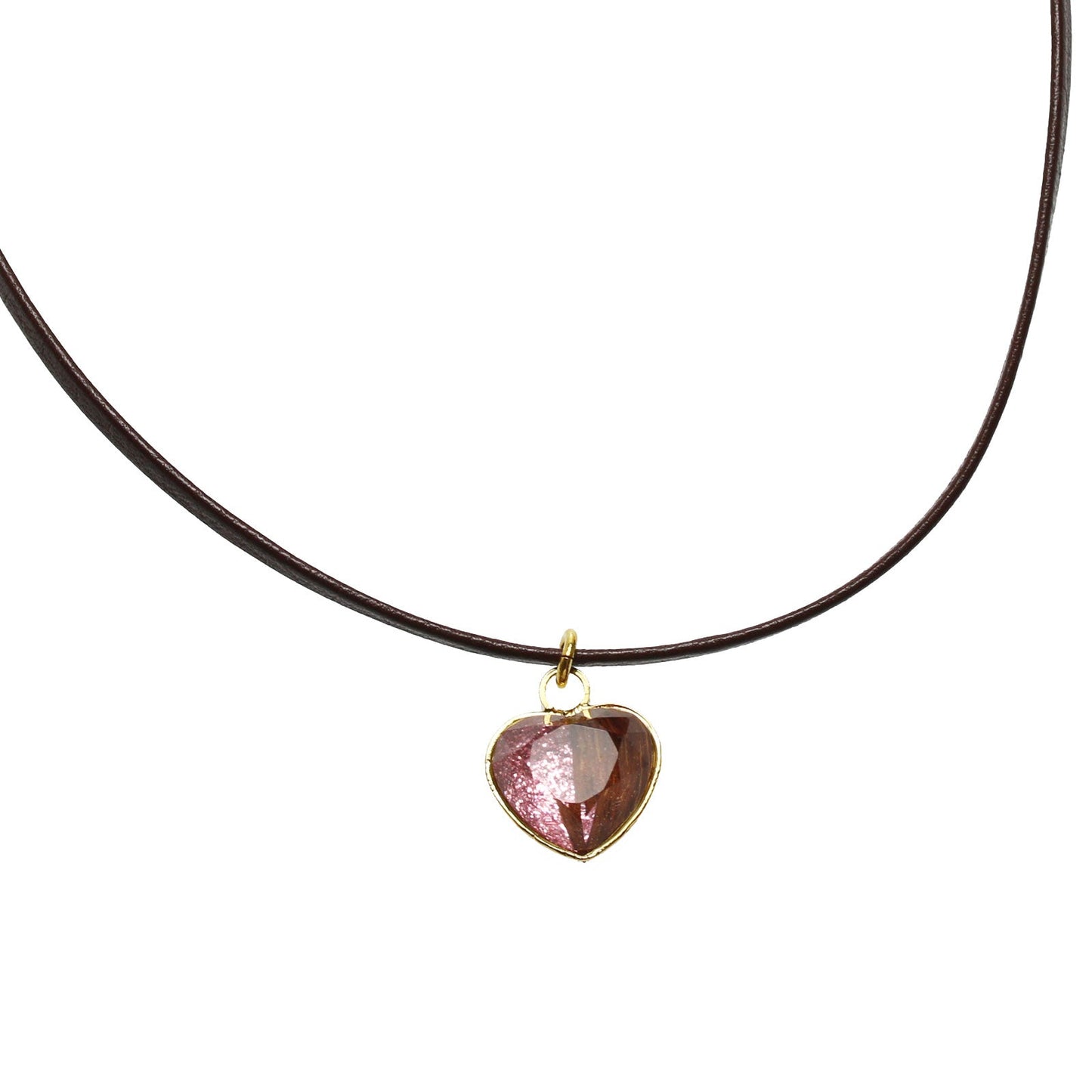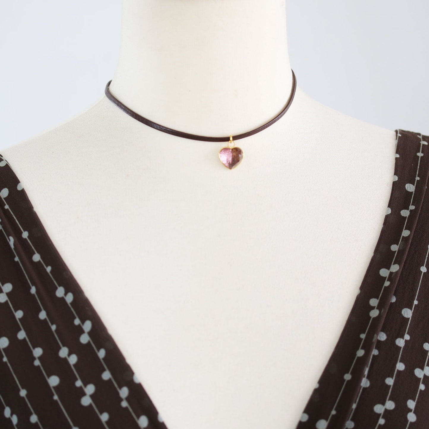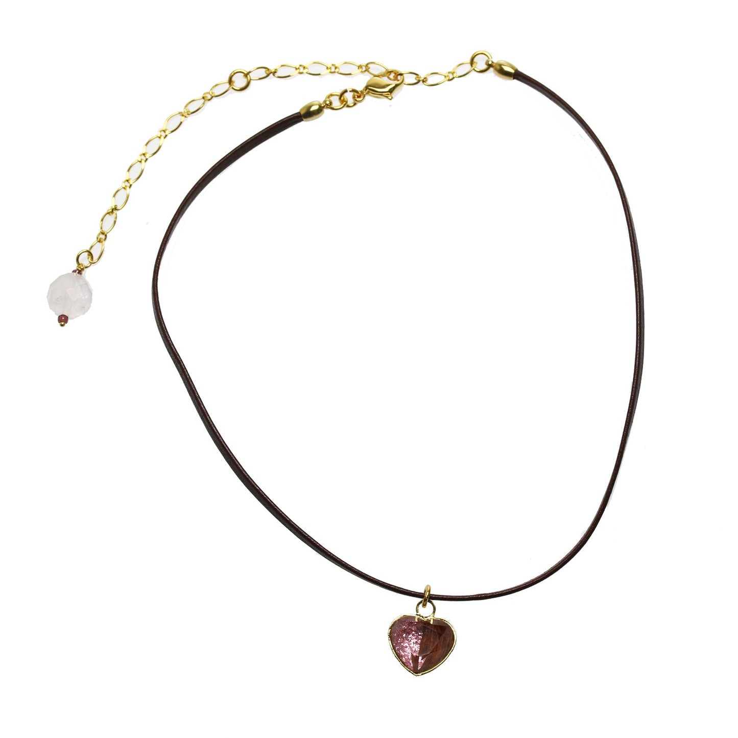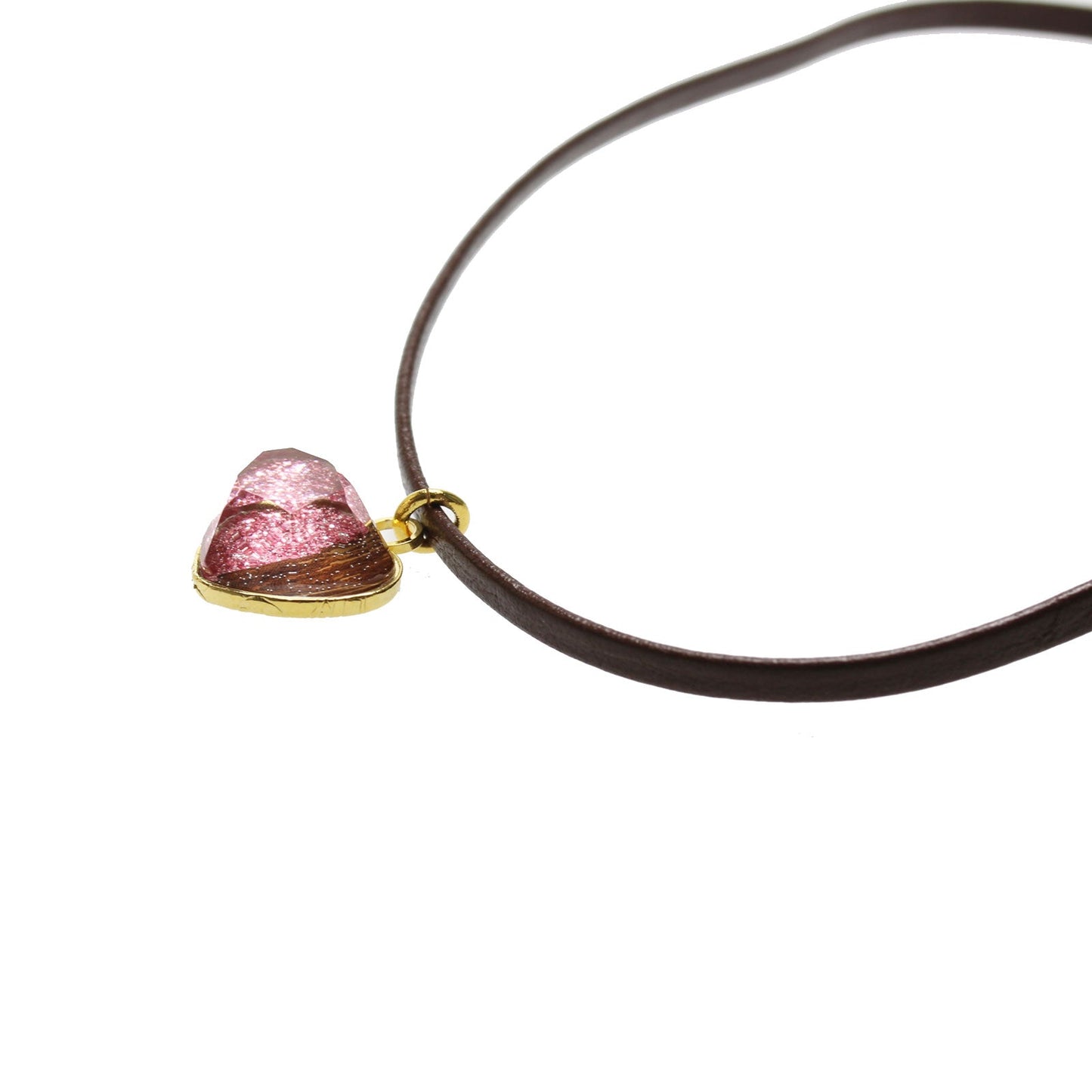 It is a leather cord choker using the resin parts, from the "Wood & Lame Series". We use the leather straps of slender brown, and put a rose quartz. It is recommended for casual accent of casual dress.