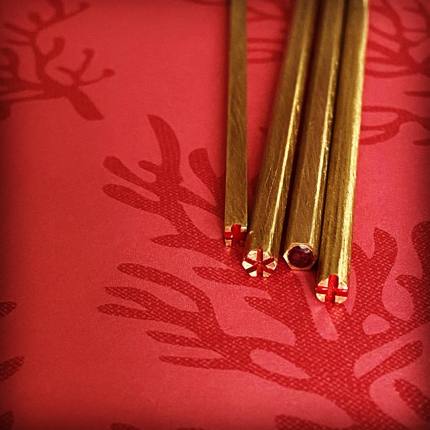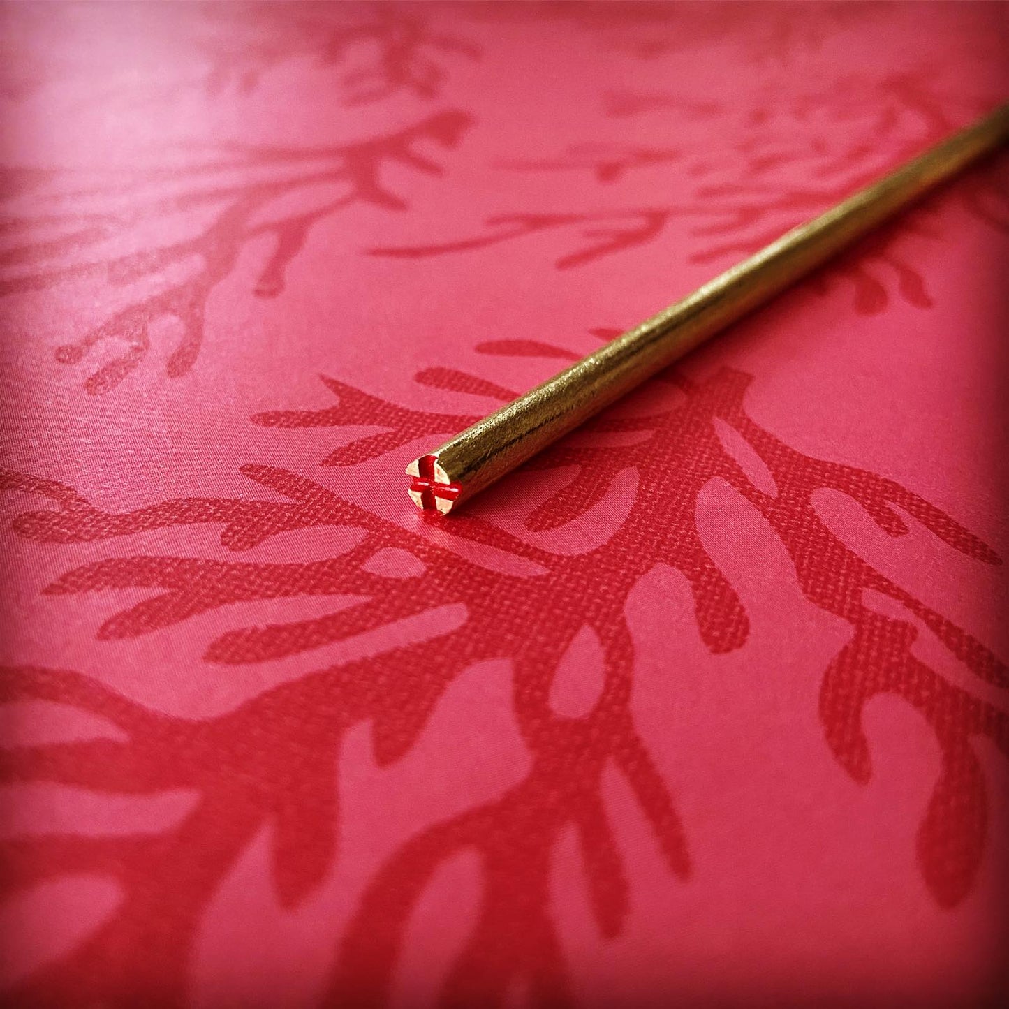 It is a simple "Men's Hair Stick" that makes use of the brass material as it is. However, it is also ideal for women. Square, round, and hexagonal brass tips has red patterns or with stones. Since it is made of bullion, it is sturdy without breaking. The surface has a matte finish, so the more it is used, the more flavor it develops. Please enjoy the luster and texture of brass. To create even more stylish hairstyles, you can combine the two different designs. It goes well with any occasions and comes with a high-grade paulownia box for storage. It is an ideal gift for loved ones.