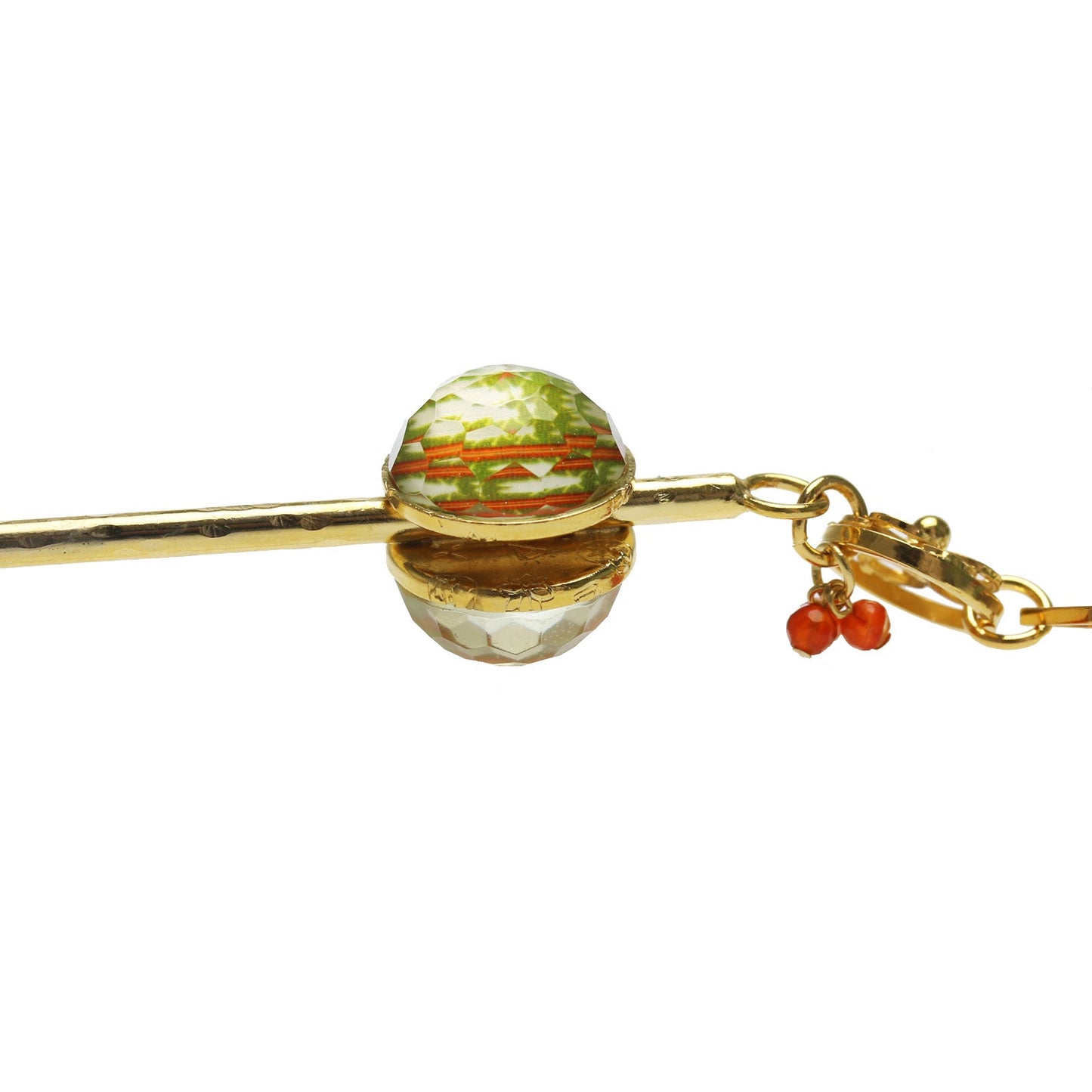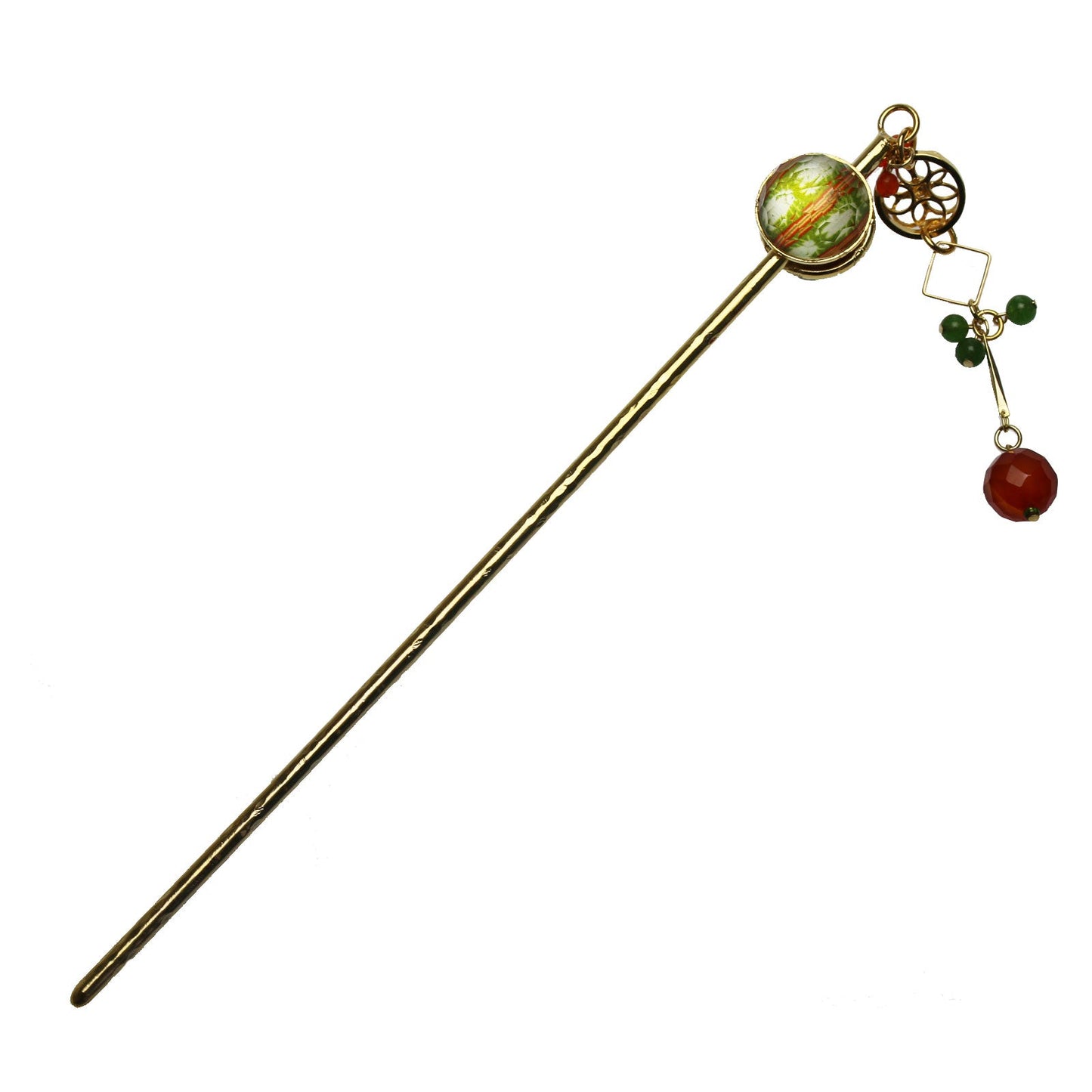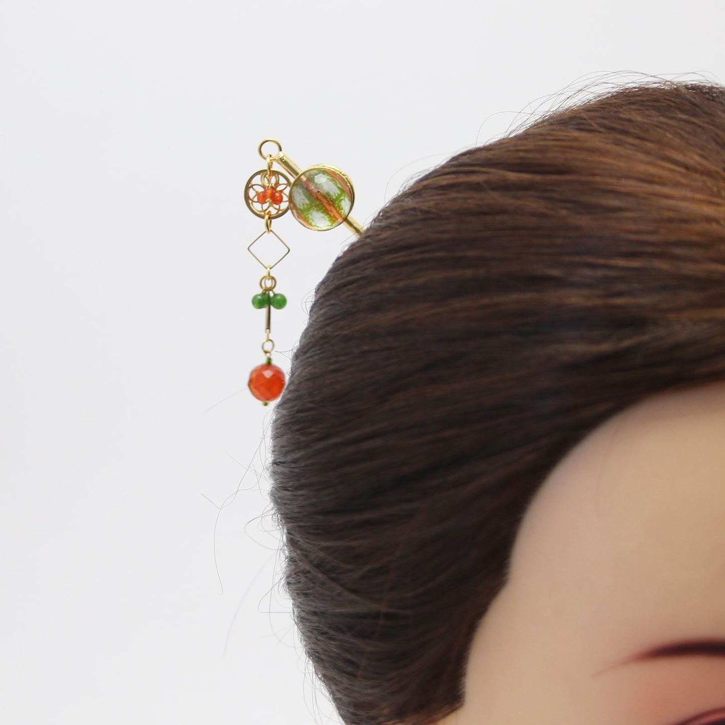 It is the one stick hairpin using the resin parts of "Cicada" Series. Hanging carnelian and quartz (dyed) according to the color of the resin. It is easy to use for making dumpling hair.
