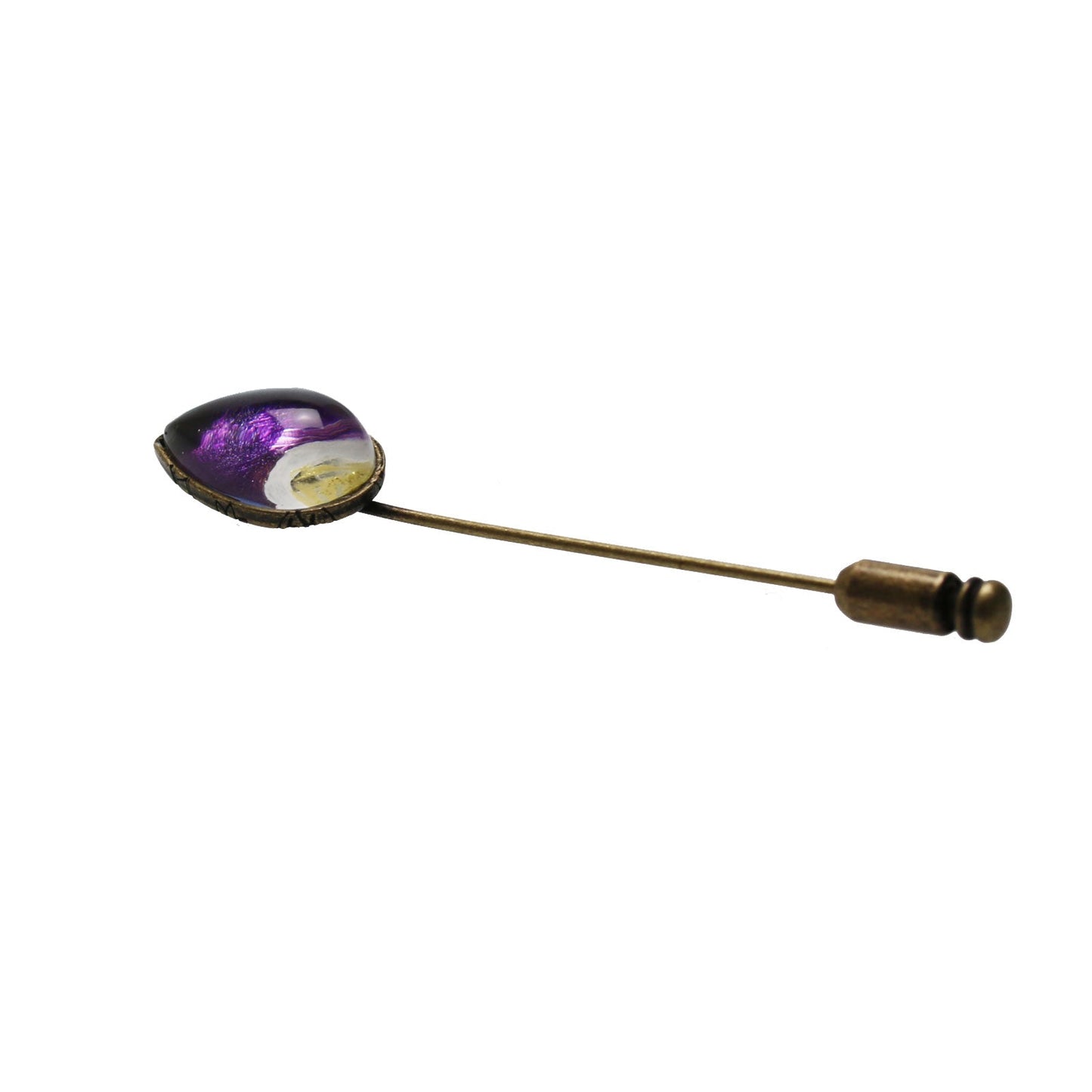 It is a simple hatpin using the resin parts of the "Flame series" (Purple). Shaped like a purple flame will pull the eye. It is recommended for casual accent of the jacket collar, Hat ornaments and you can use it to fasten the scarf or shawl.