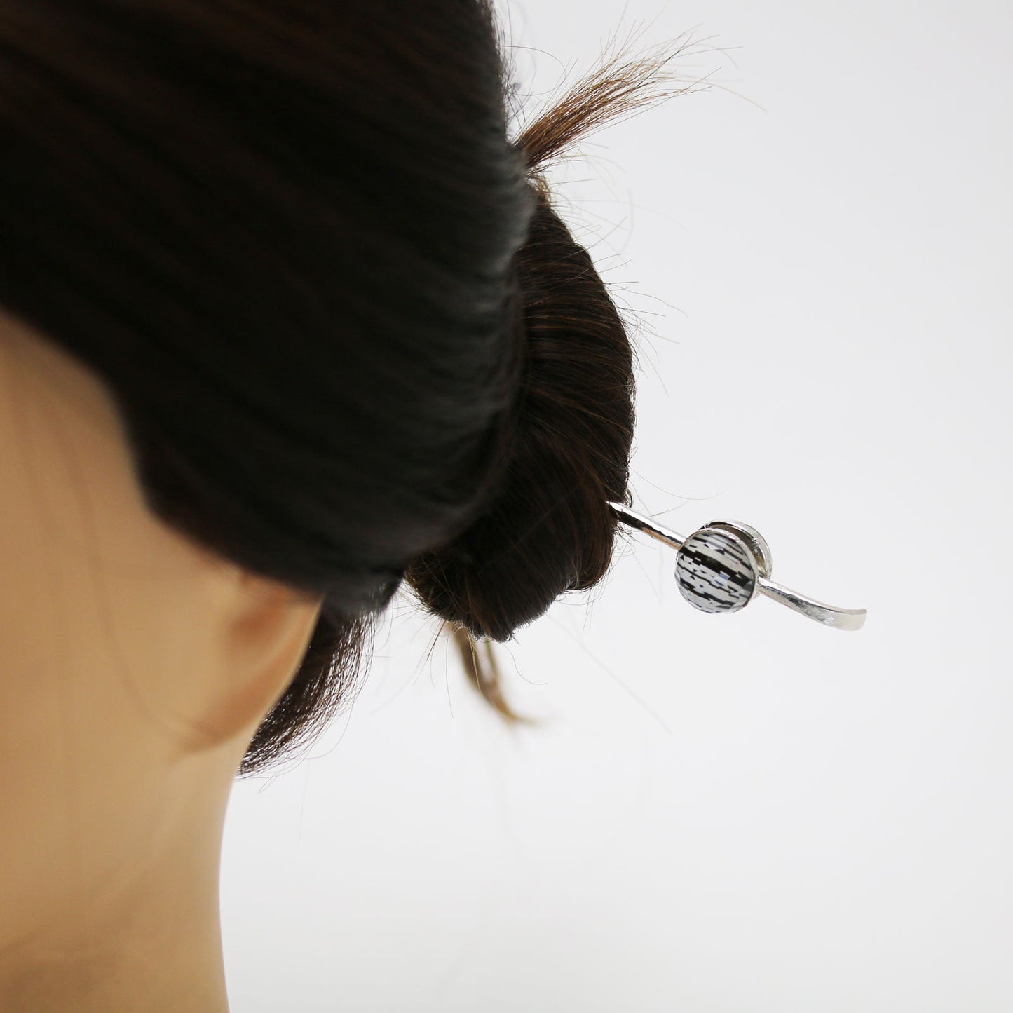 It is a one stick hairpin using the resin parts, from the "Black & White Series". Plaid and striped is the combination on the front and back. Easy-to-use design and coordinating easy.