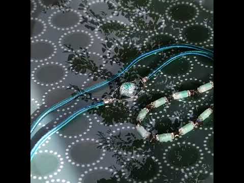 It is an eyeglass chain using the resin parts of "Plum Cake Series" (Blue). The silk braid quartz and magnetic containing hematite stiff neck eliminated which is expected. Braid of silk is what was a special order to the Kyoto craftsmen. It is recommended to the unique accent of glasses.