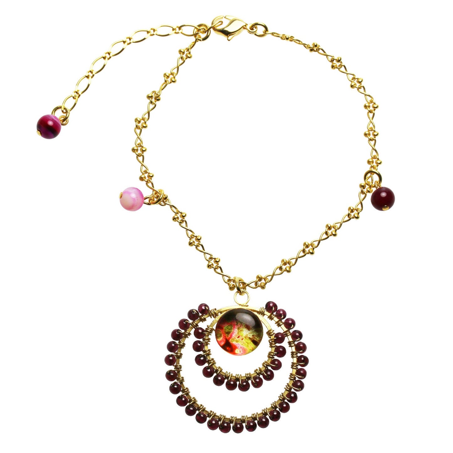 Anklet Red Garnet Agate Gold