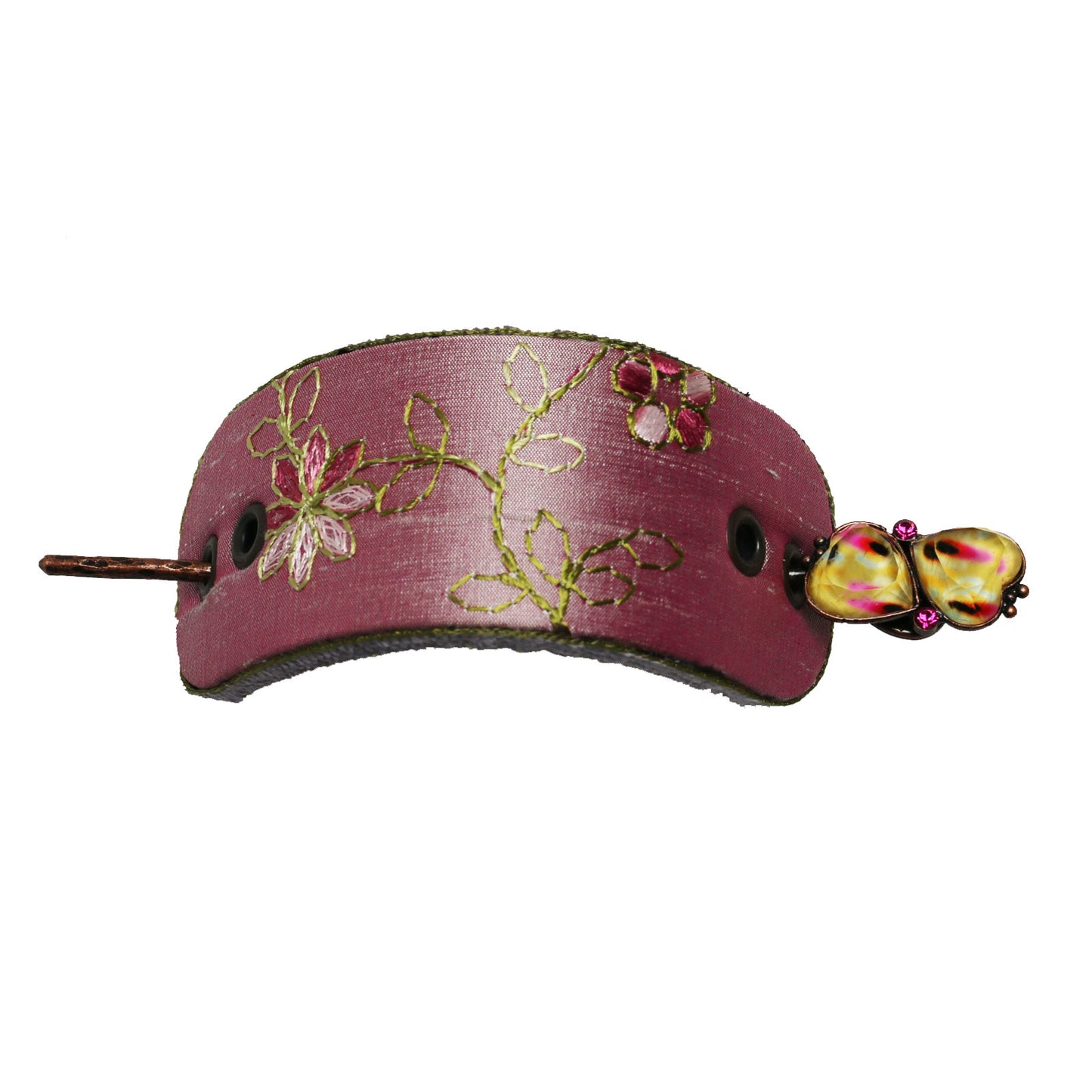 Barrette Hair Stick Pink Silk Handmade