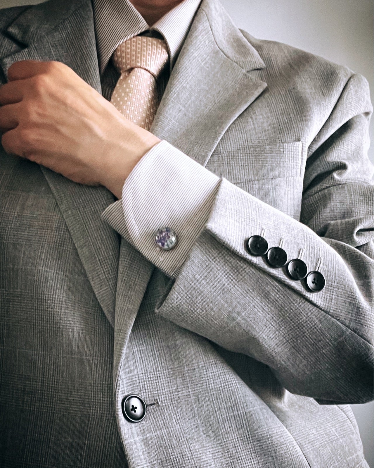 It is a button cover using resin parts of "Plum Cake Series" (Purple). It is an eye-catching chic shade. Recommended for casual accent of cuffs. It is an item that tickles playfulness.