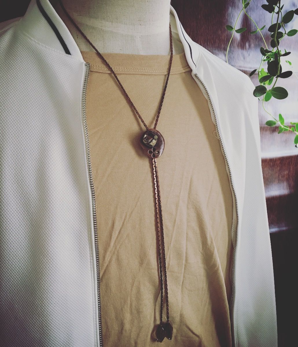 It is a chain bolo tie using square resin parts of "Lily Series" (White). It is a smoky quartz that matches the color of the resin. Attracts eyes with chic hues.