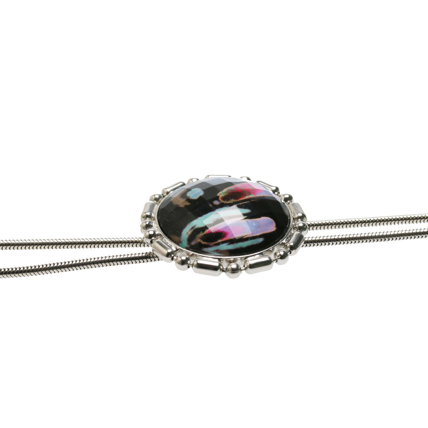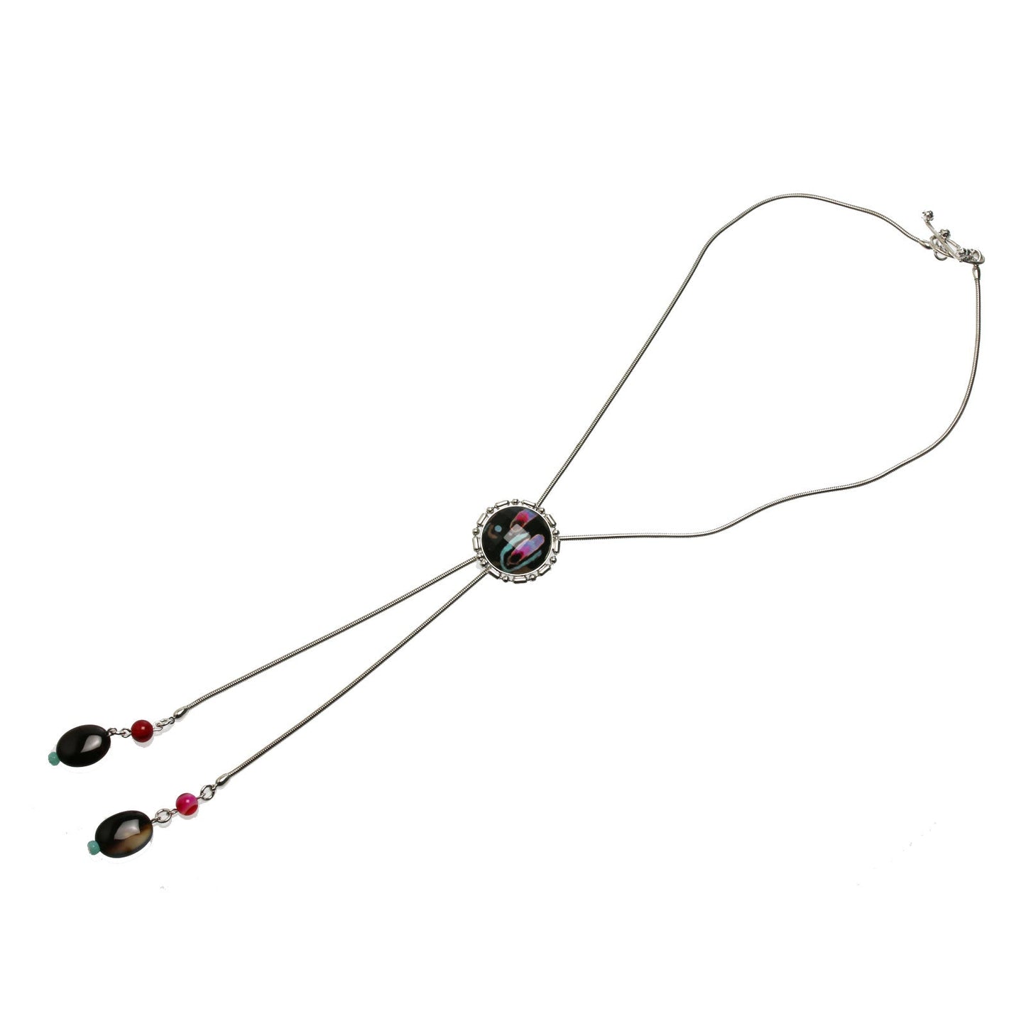 It is a chain bolo tie using the resin parts of "Dororon Series" (Black). It was matched to the color of the resin that was hanging Tibet agate, agate and the amazonite. Resin portion can be moved to the any position where you want. Impression of the appearance is similar to a long necklace. This bolo tie is recommended for those who for the first time.