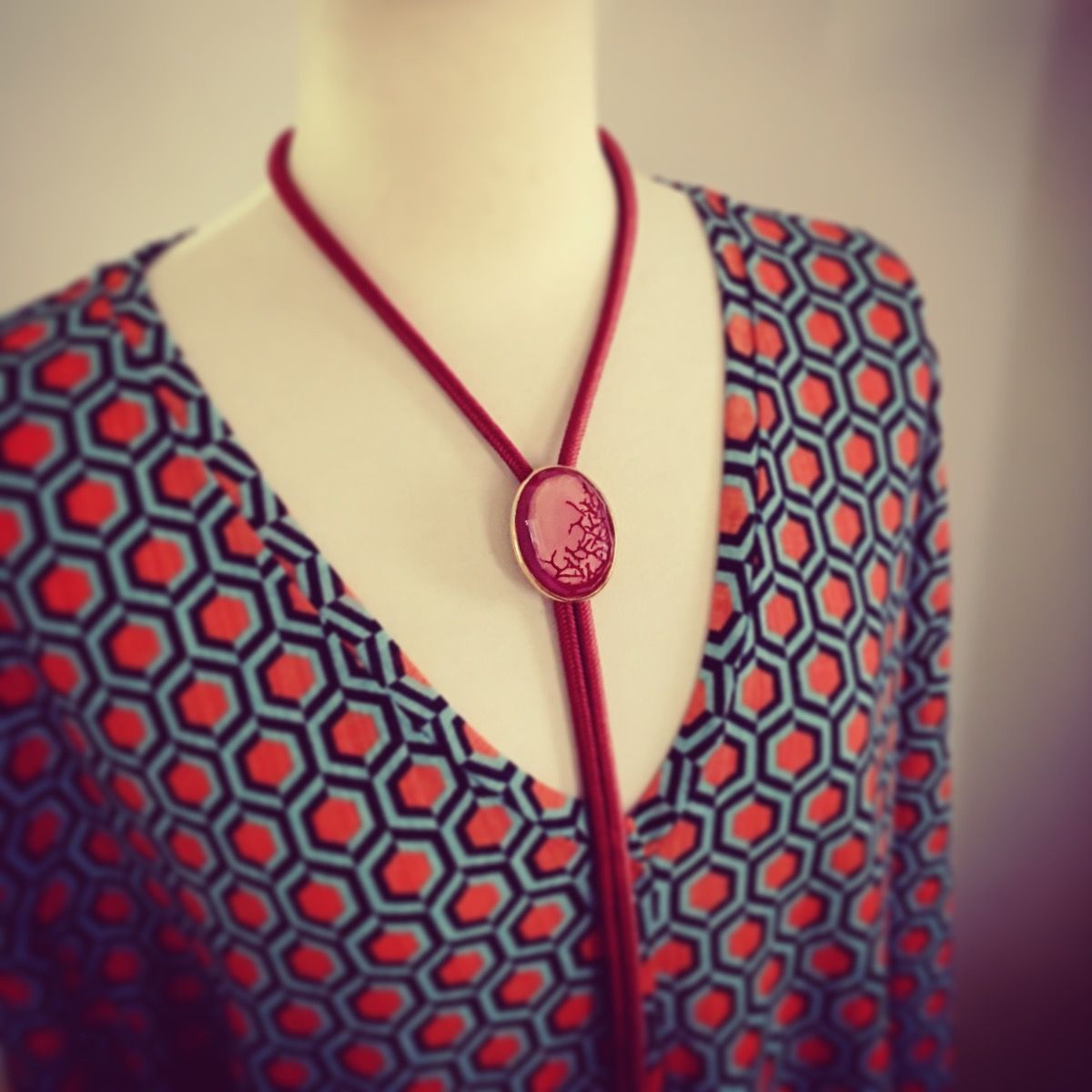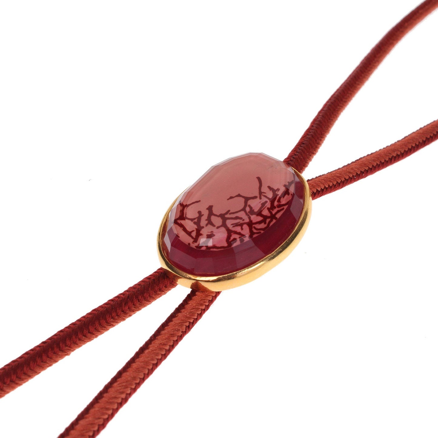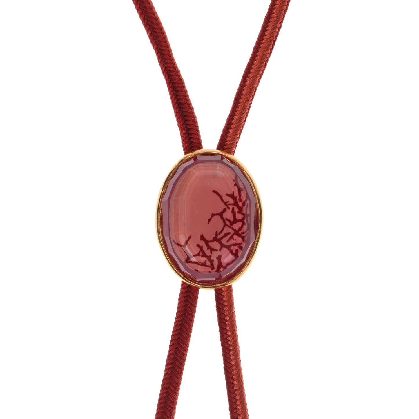 Silk Braid Bolo Tie Blood Red Coral Gold