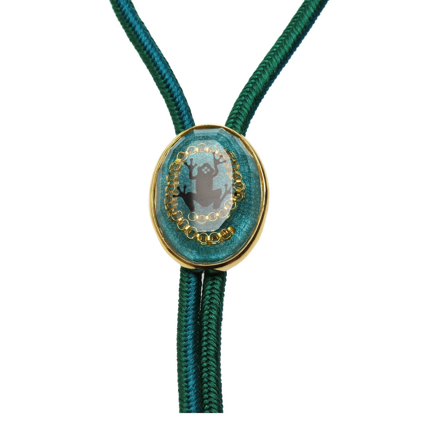 It is a silk braid bolo tie using the resin parts of the frog pattern. Braid was custom-made in Kyoto craftsmen. Silk unique luster is beautiful green and pull the eye.