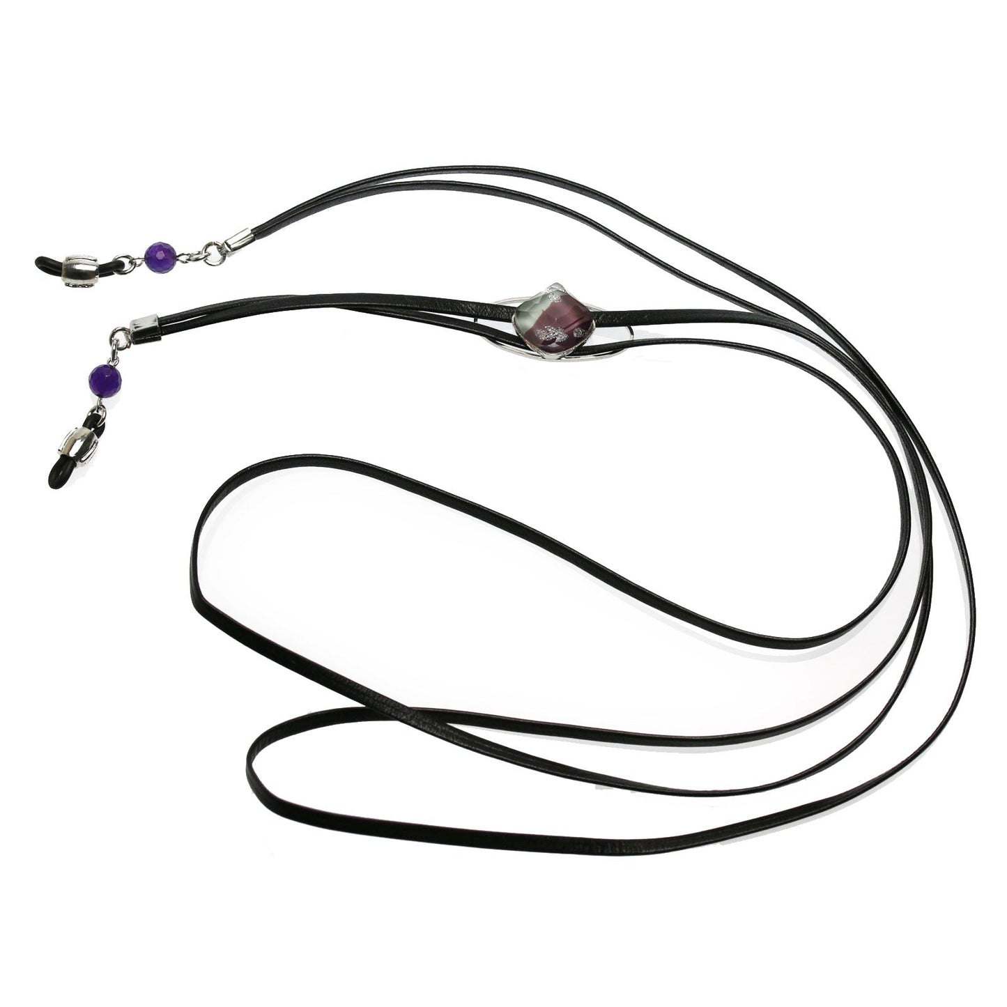 Es una cadena para gafas que utiliza piezas cuadradas de resina de "Rainbow Series" (Púrpura). Ponemos amatista en la punta de la correa de cuero. Es ligero y fácil de colocar. Debido a que se trata de decoraciones simples de un solo lado, los hombres también son unisex. Al acento individual de las gafas por favor.