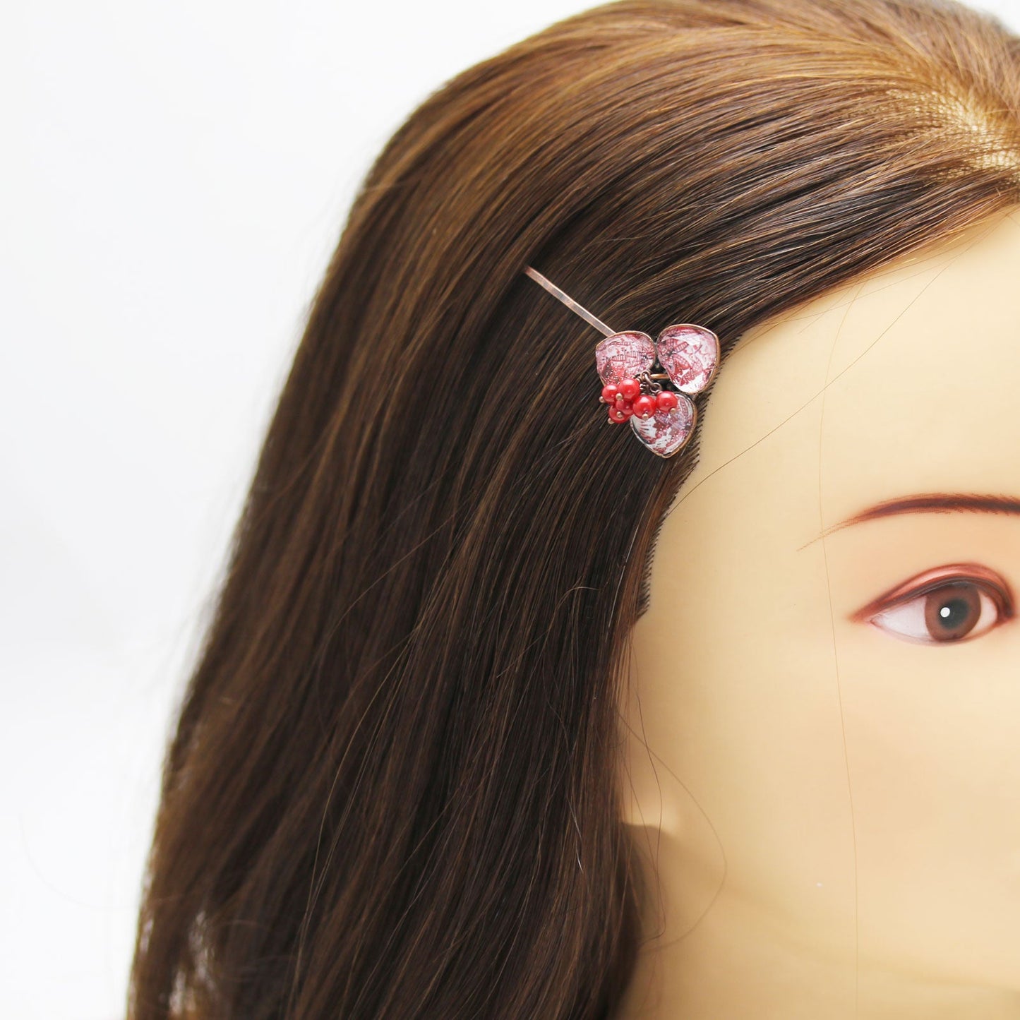 It is a gorgeous hairpin using resin parts of "Lily Series" (Red). Coral (dyed) was hung in the middle according to the color of the resin. Recommended for accent of ornate hair style.