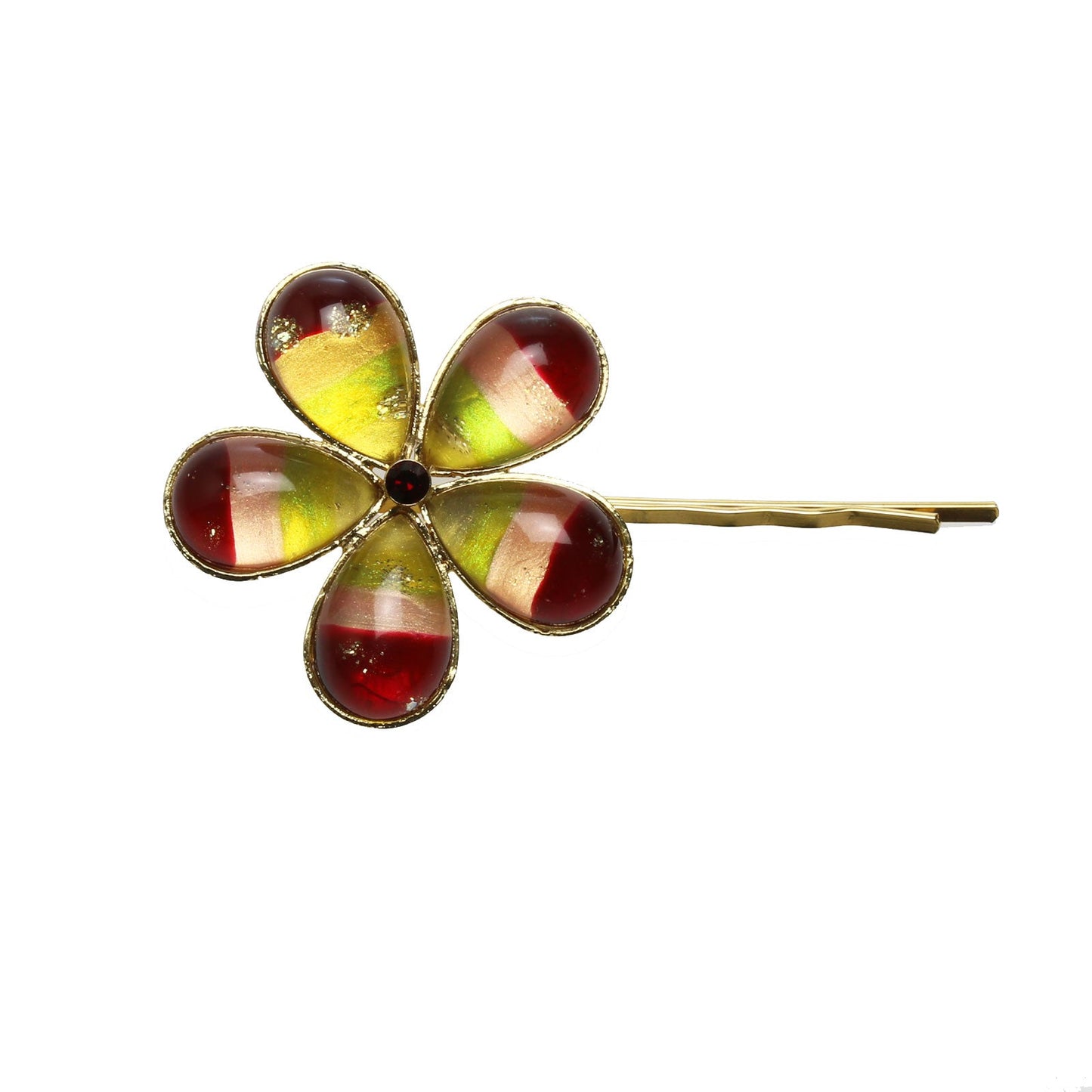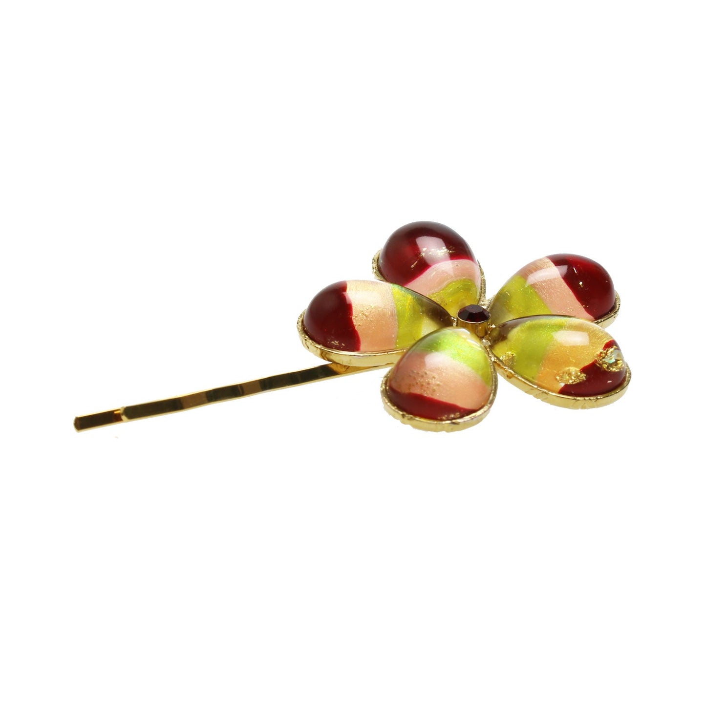 Hairpin Gold Rainbow Orange Flower 24k