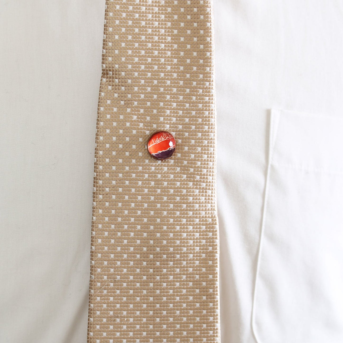 It is a unique tie tack using the resin part from the "Architecture Series" (Purple). The surface cut and the transparency is attractive. You can see the beautiful architectural pattern sinking at the bottom. Wear it as a subtle accent to your tie. The resin part and metal part are handmade. It is a classy accessory as a gift.