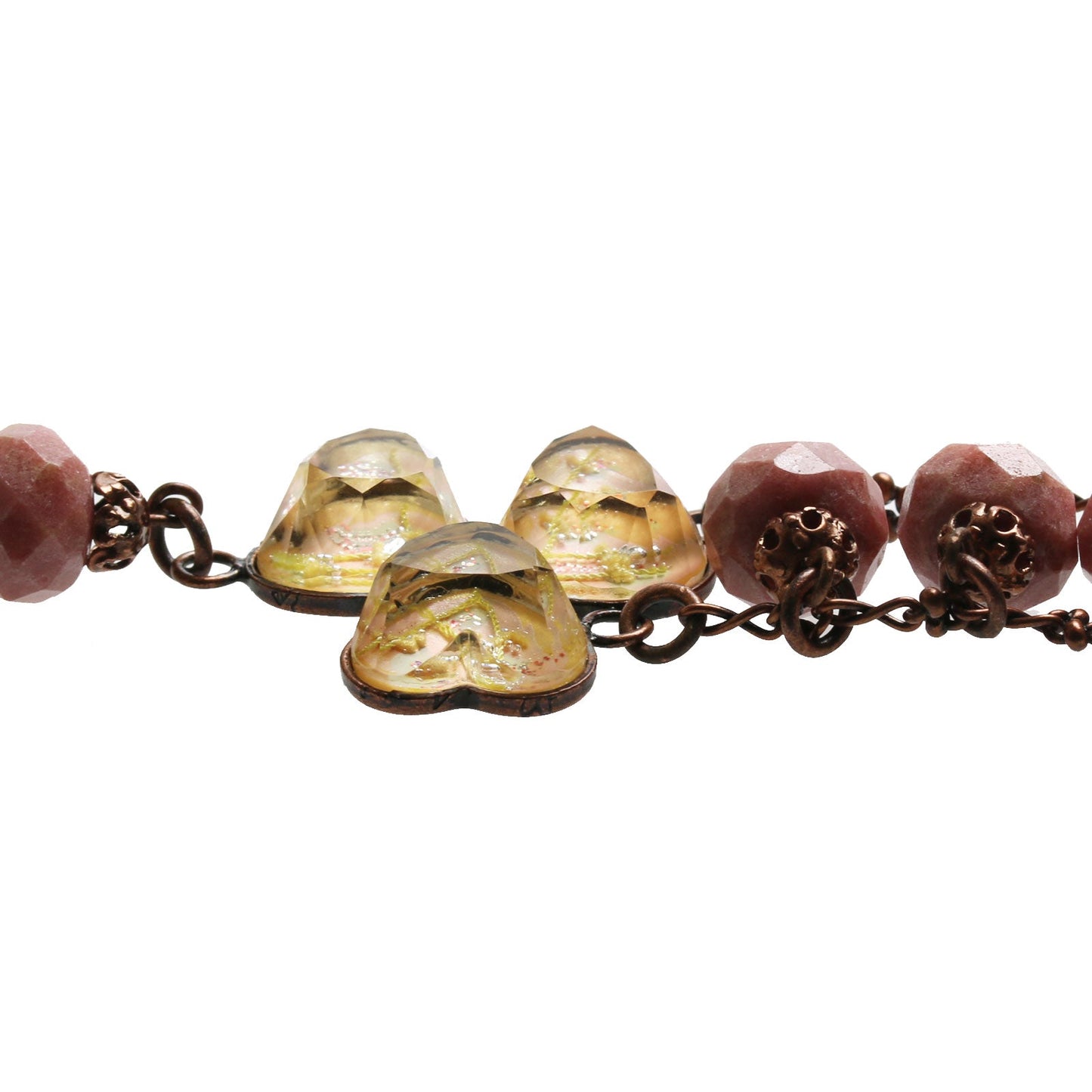 Es una pulsera elegante que utiliza las piezas de resina de la "Serie Pollen" (Rosa). Tiene un diseño único que combina dos partes de flores rosas con rodonita en forma de botón. Es un acento elegante para tu muñeca. Combínalo con un vestido y disfruta del aspecto antiguo. Se recomienda como un regalo ideal.