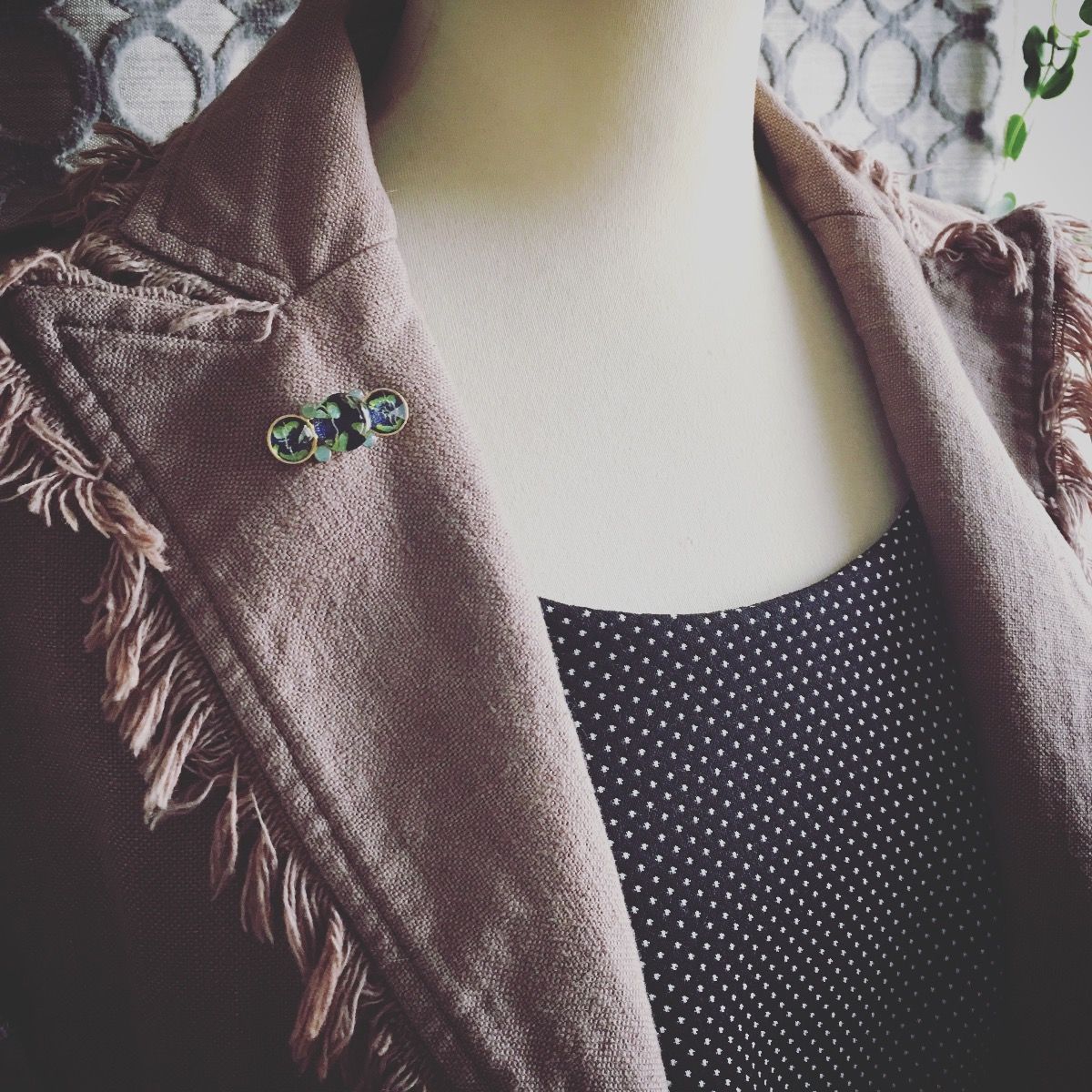 Es un broche que utiliza piezas de resina de "Vine Series" (Azul). Se recomienda para el acento casual del cofre porque es un color hermoso mientras es pequeño. es unisex