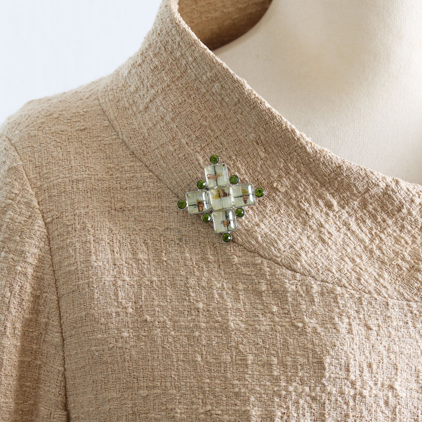 Es un collar broche que utiliza piezas de resina de "Vine Series" (Blanco). Es fácil de coordinar con tonos elegantes. Es un tipo de 2 vías que puedes quitar una cadena y convertirla en un broche, o convertirla en un collar.