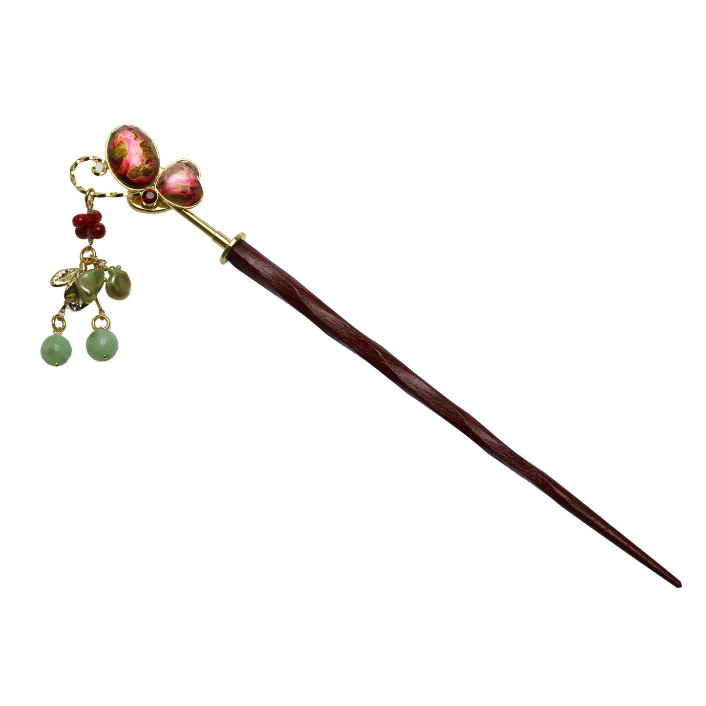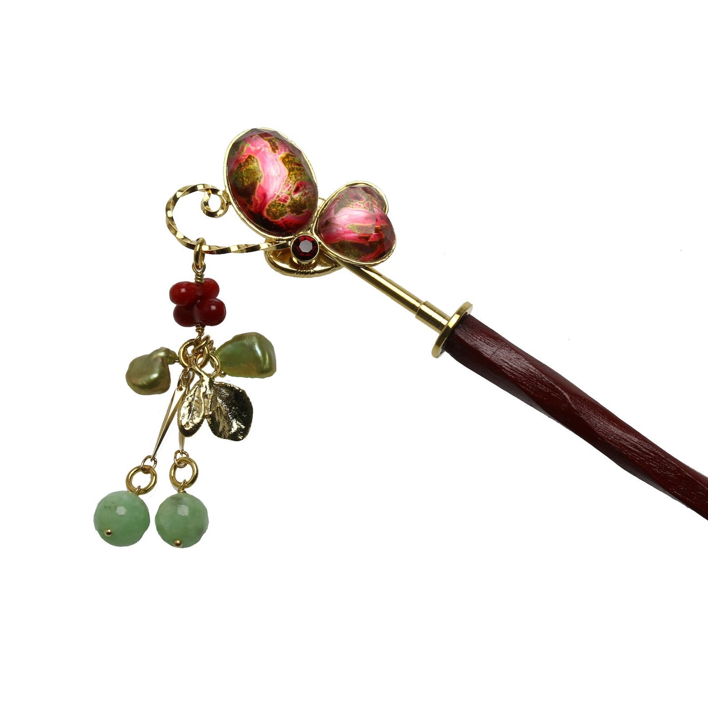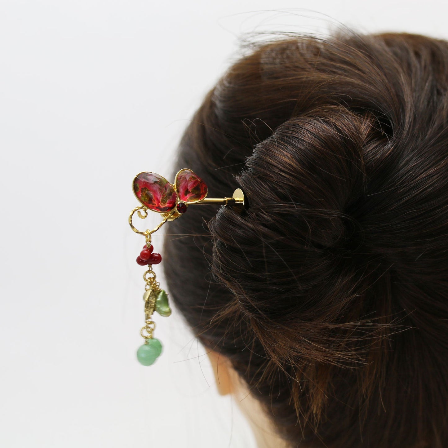 Es la horquilla de adorno intercambiable que utiliza las piezas de resina de la "Serie Amazon" (Roja). Un tono único brillará en tu cabello. Puedes disfrutar de la moda única del moño.