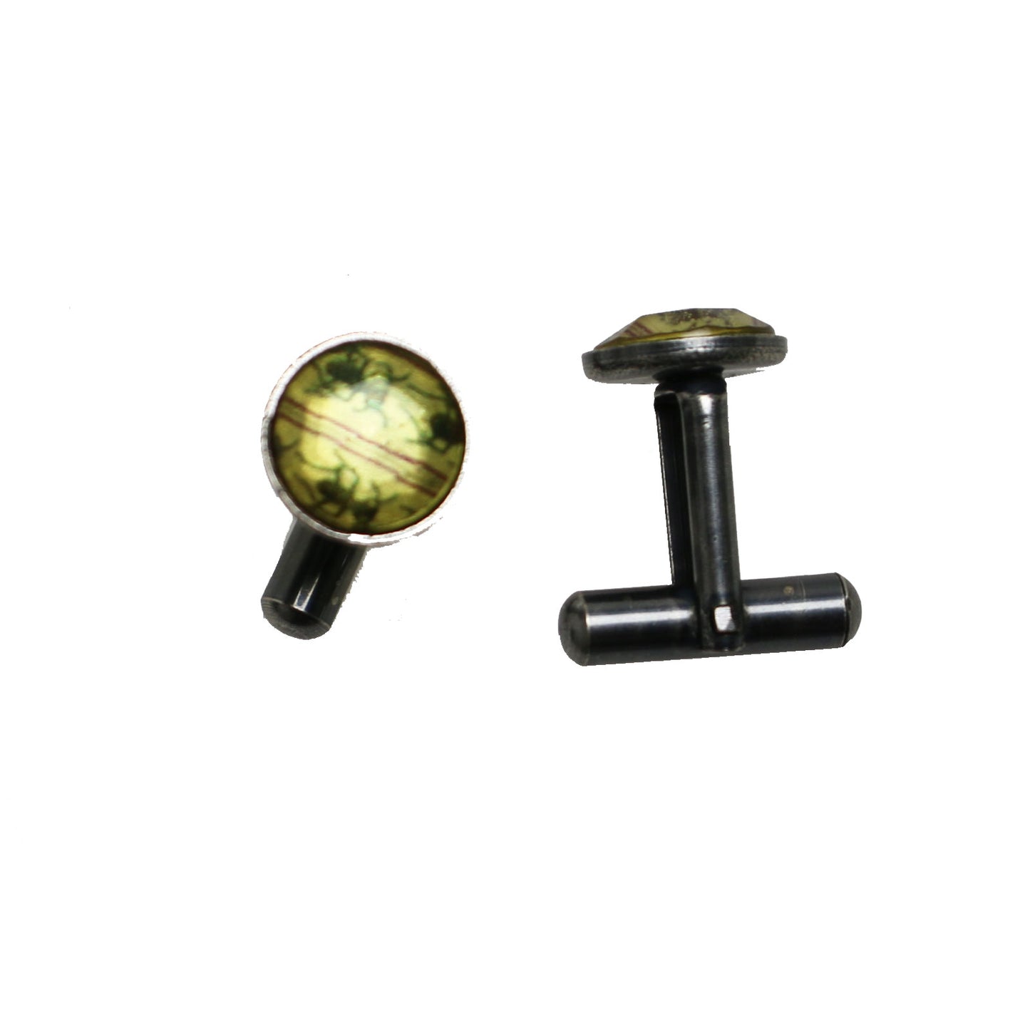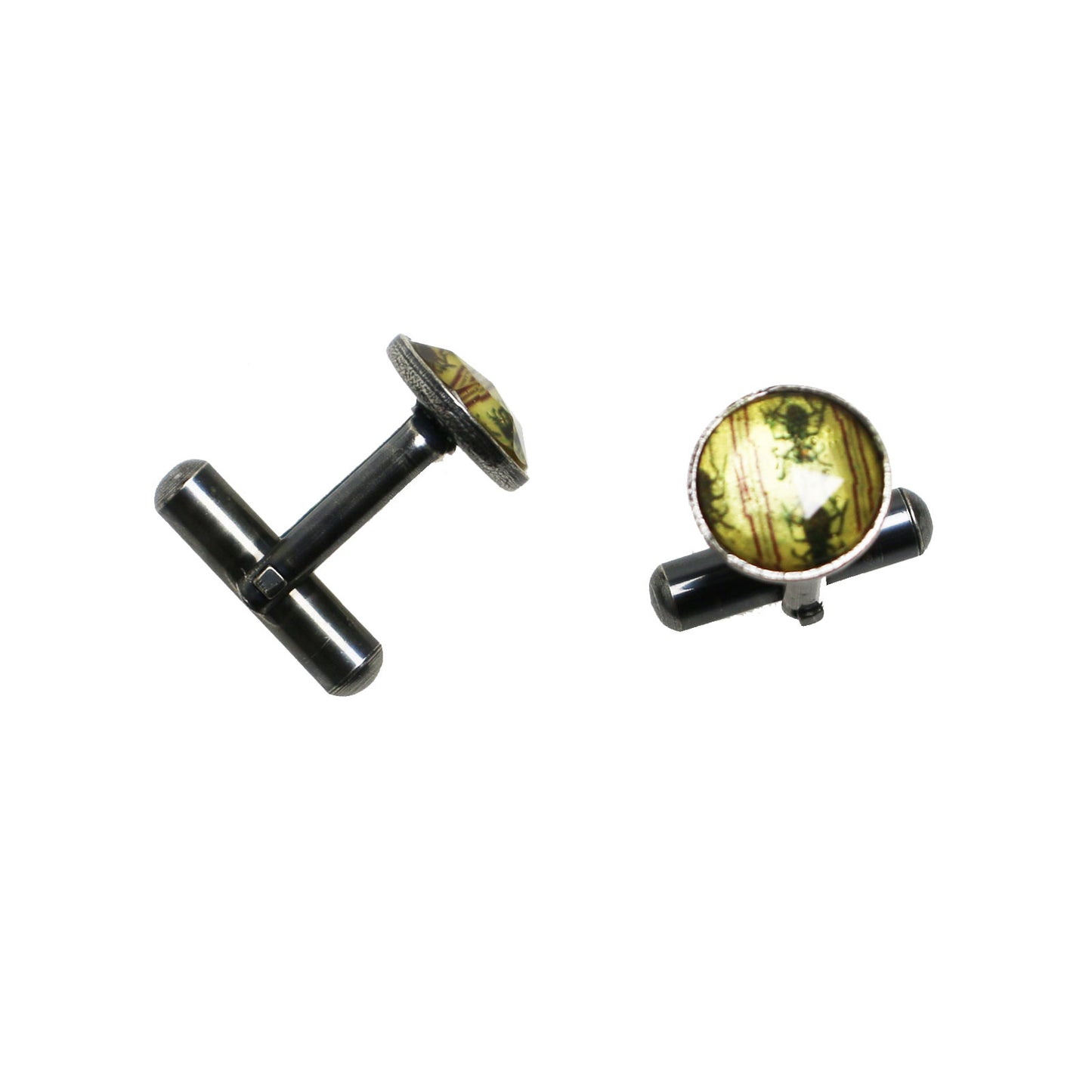 It is a pair of cuff links using the resin parts from the "Tiger Beetle Series." The appearance of tiger beetles is striking and attractive.