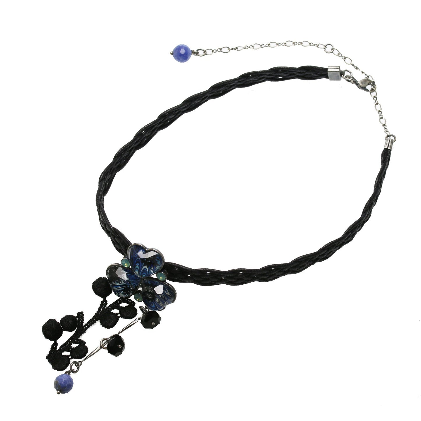 Es una gargantilla que combina partes de resina de la "Serie Mármol" (Azul) en tipo violeta. Es un hermoso diseño que sacude las hojas en forma de encaje, ónix y sodalita debajo de la resina. Para el magnífico acento del cuello.